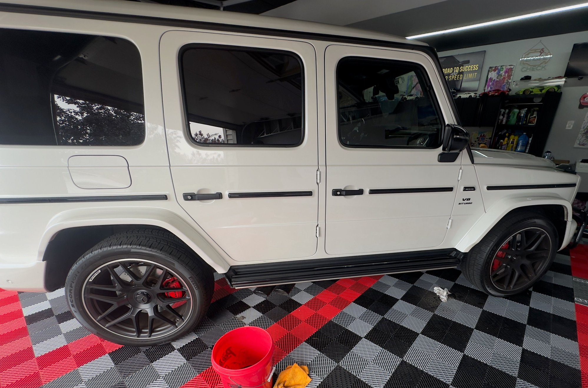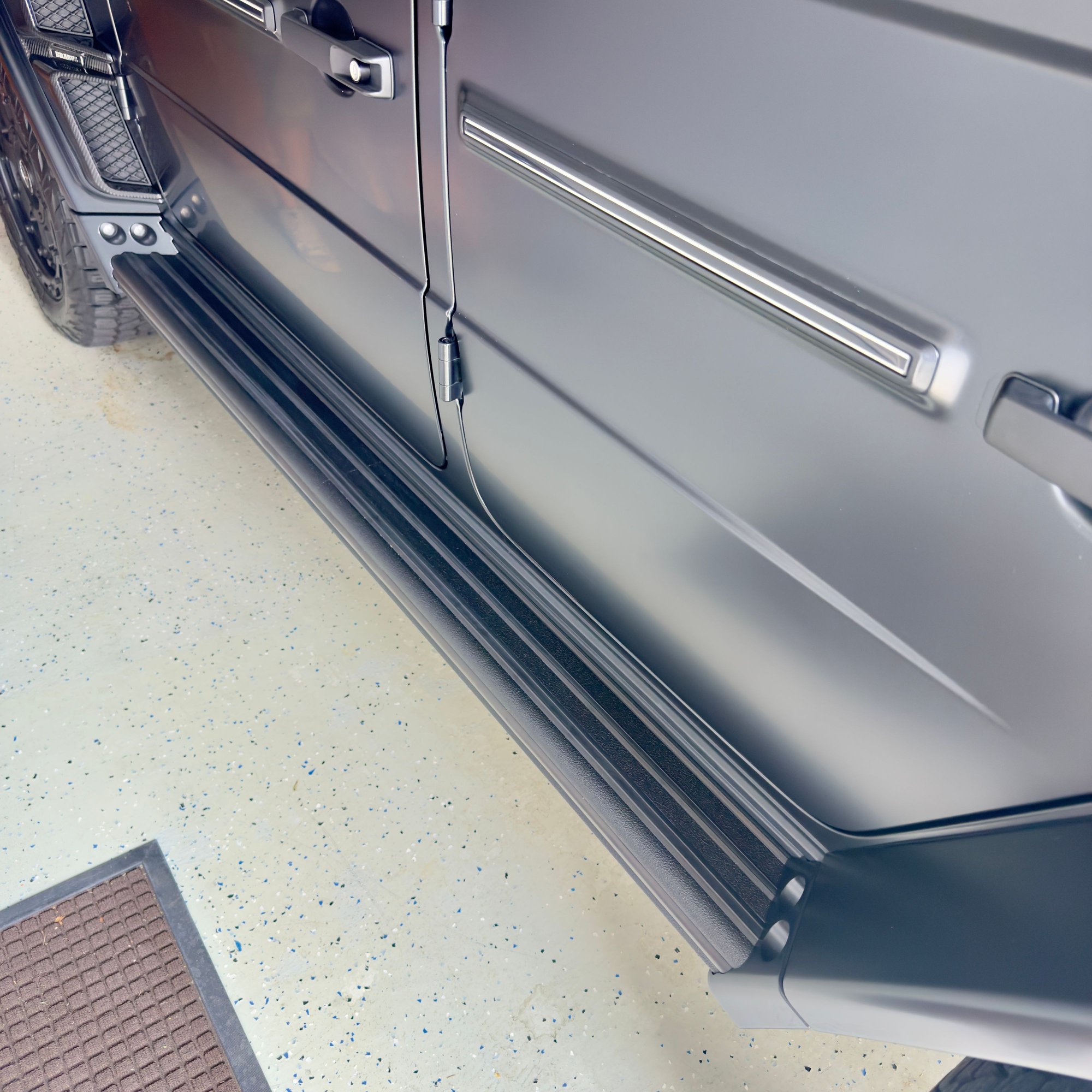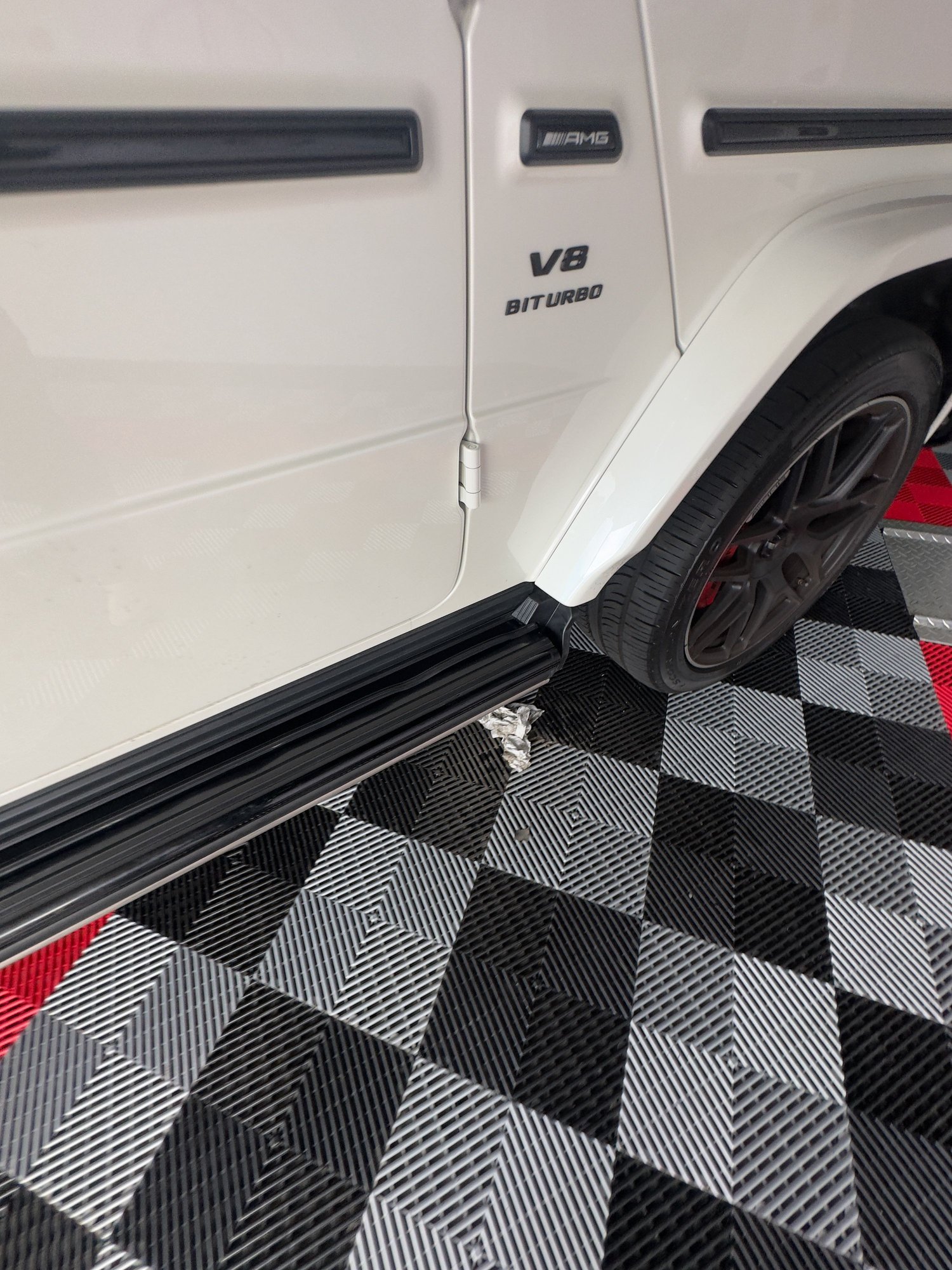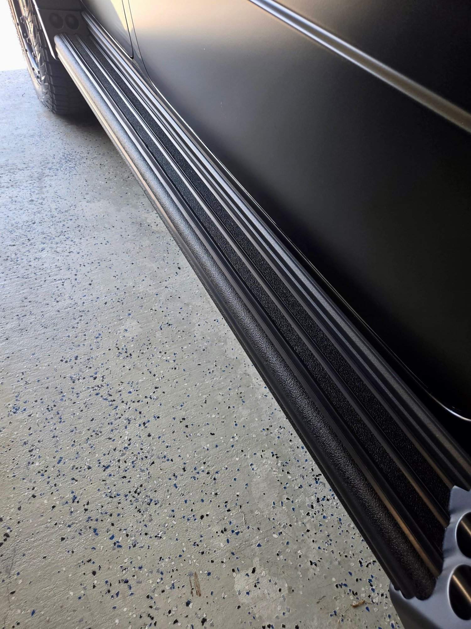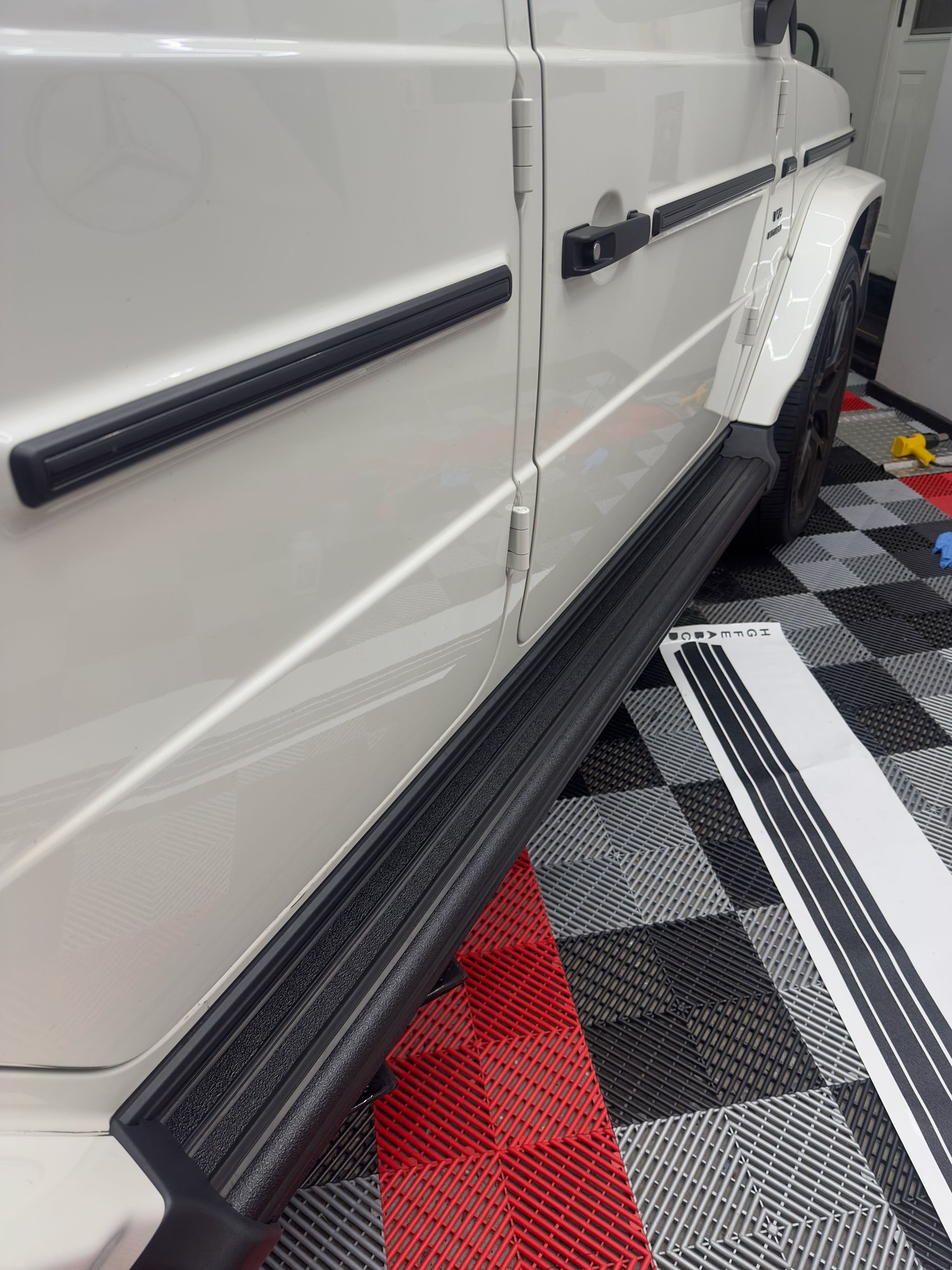 I recently picked up a ’21 G63 and have slowly started making a few custom touches. The truck has a “stormtrooper” look—Diamond White (799 - G manufaktur diamond white bright) with AMG Night Package black accents. The previous owner had wrapped the side steps in gloss black vinyl, but it was starting to show its age, so I decided to refresh the look.