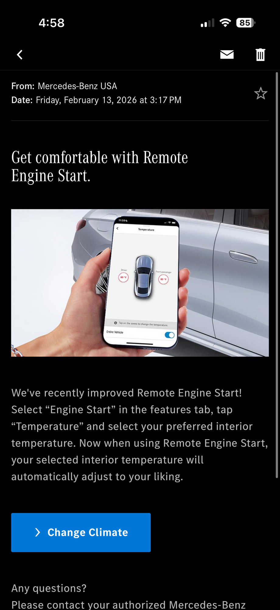 I have it on my 2026 as part of the "Mercedes-Benz Connect" package including remote vehicle finding, theft detection, etc. The remote start is only good for 12 months before you have to sign up for a subscription.