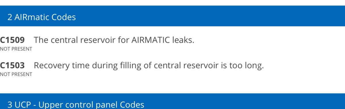 That reservoir code is a red herring though, as the leak can be anywhere along the bidirectional air line between it and the valve block.
