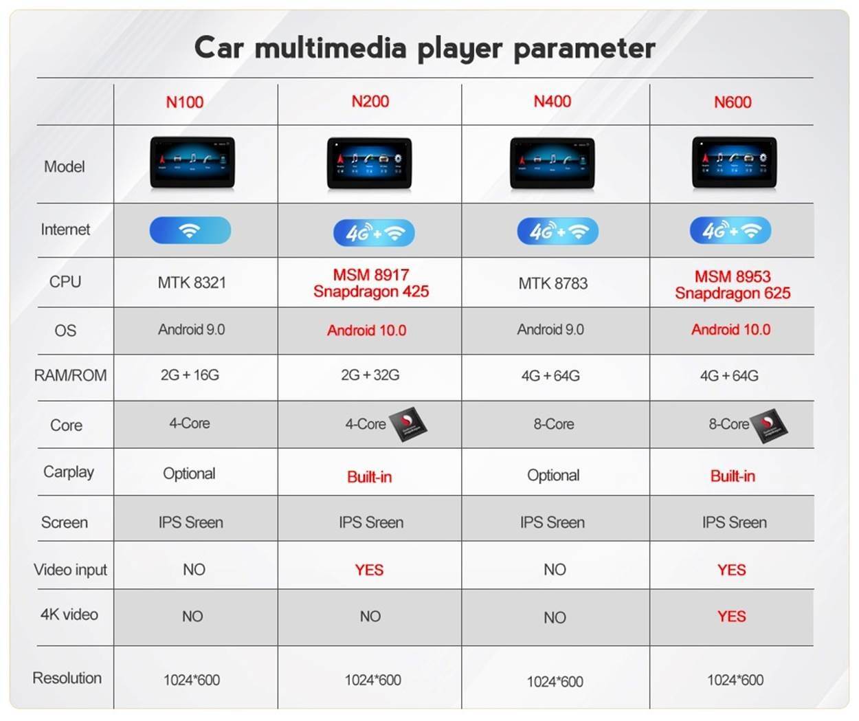 I have spoken to the dealer and they are getting these new units next week. They will according to my conversations with them exchange the unit once they get it next week.. Those are the specs I was looking for and if Android 10 is included with no overlay as you posted I will be happy taking the 1024x600 screen resolution. I think the only way to jump to the HD 1920x720 or even 1280x720 screen is going with the 10.1" screen which is a 16x9 screen. Unfortunately too big for the ML's.