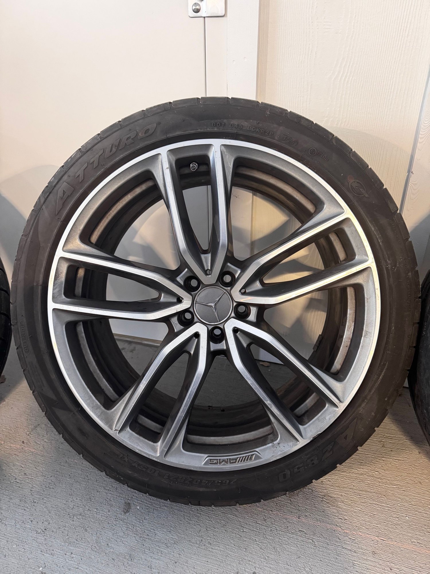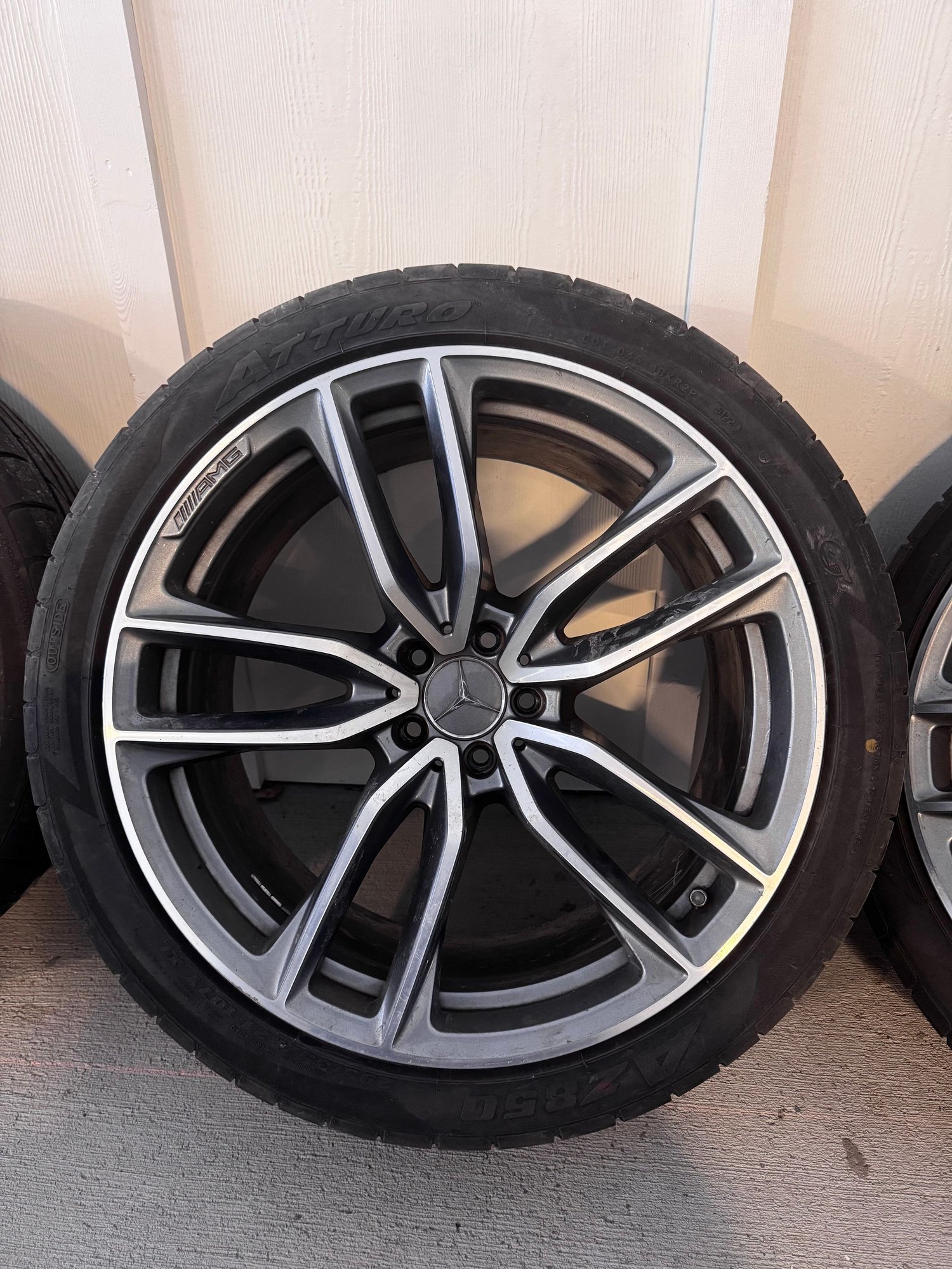 OEM Factory Genuine AMG Wheels. Wheels are off a 2019 Mercedes GLC 63. Wheels are in great shape. No cracks, bends, free of any issues with just very few light curb rash/imperfections. I have upgraded to custom wheels so I don’t need these any more.