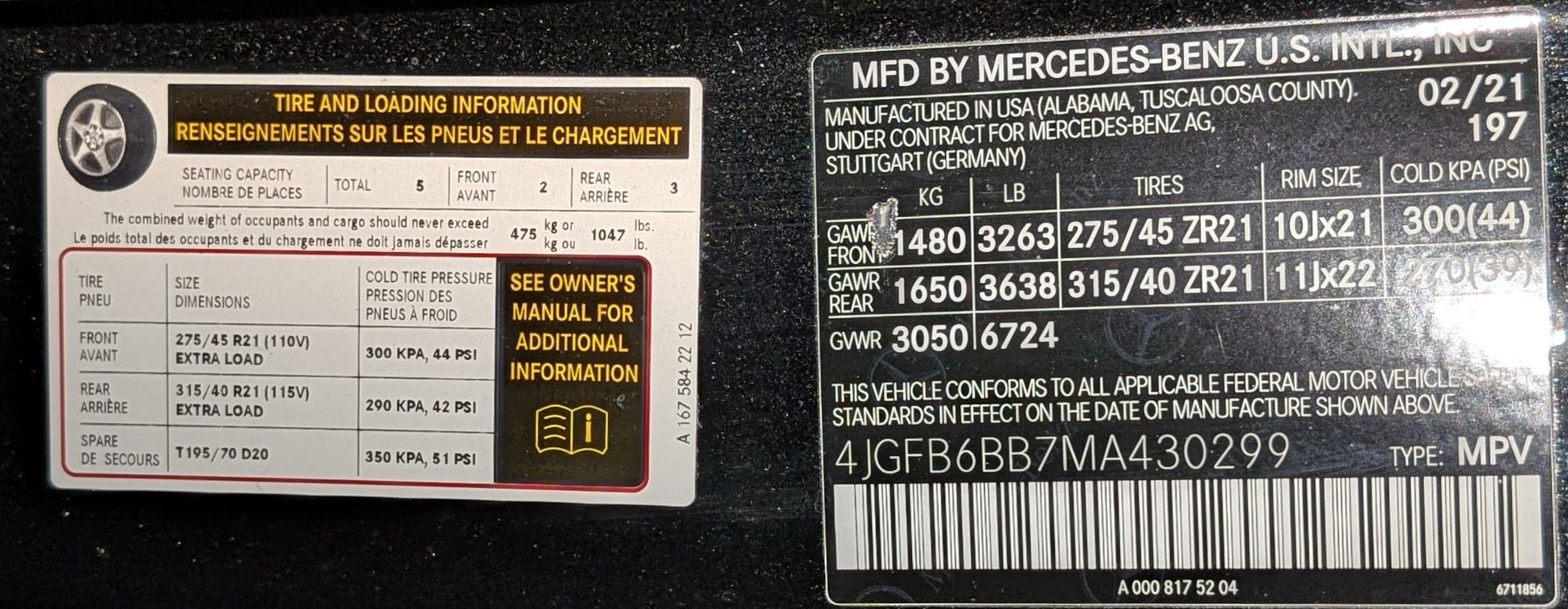 1st pic is our 2020 GLE450 doorpost sticker with axle capacities