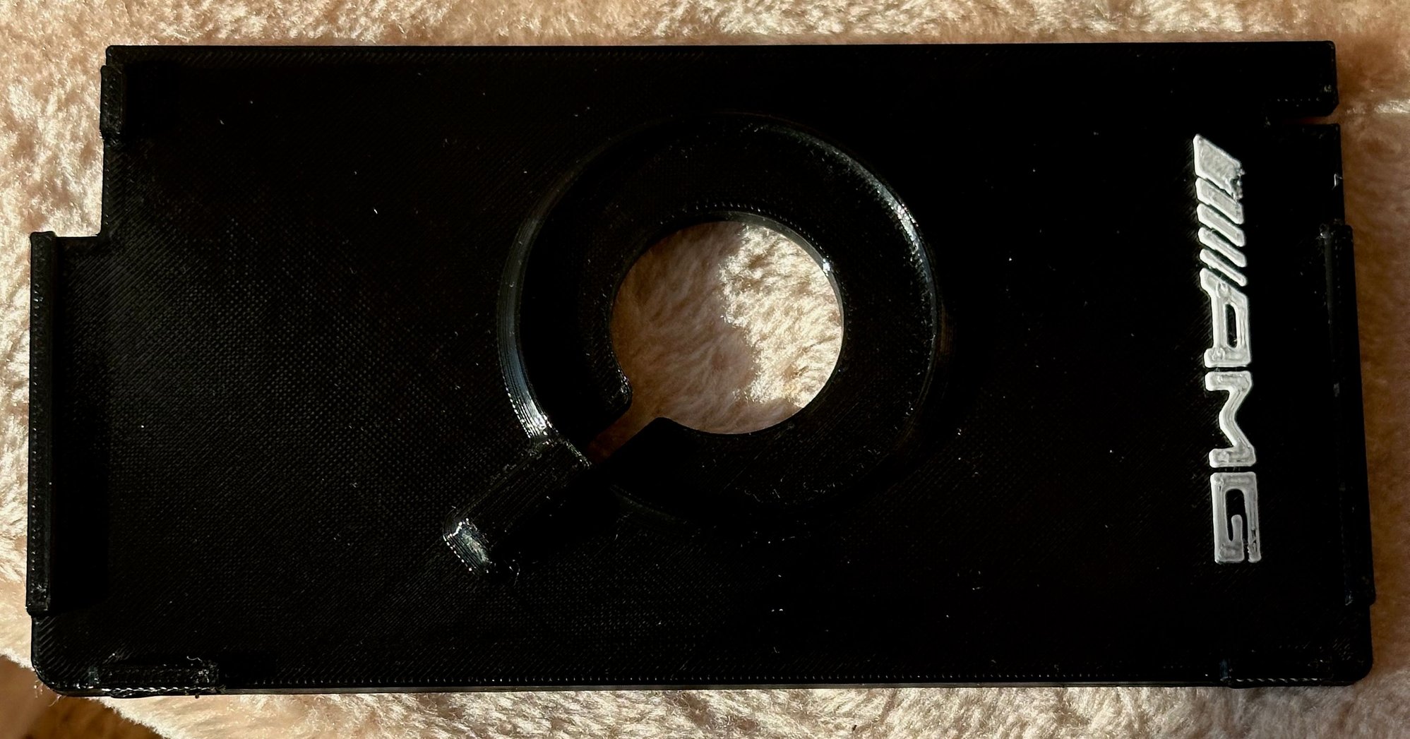 Functionally, it's complete and should work for all MagSafe-enabled iPhones, excluding Plus and Max phablets as they likely won't fit due to their increased width. I tested it with my 14 Pro, seen in the picture, and it works great. Aesthetically, I'm still waiting for less shiny materials to arrive so I can make it closer to matte black for the main body and gray for the logo. Then I'll put a black matte skin on the MagSafe circle itself. I'll post the pictures once done.