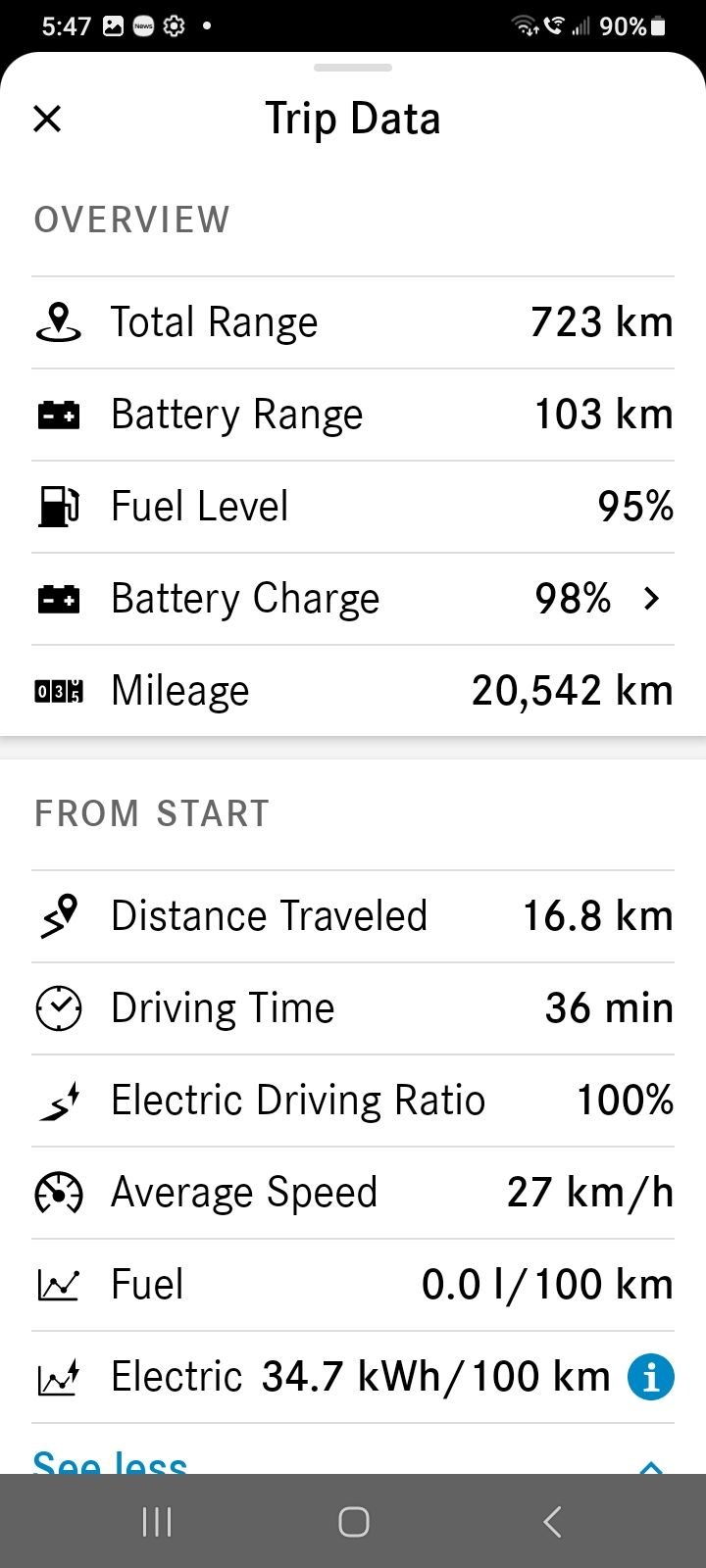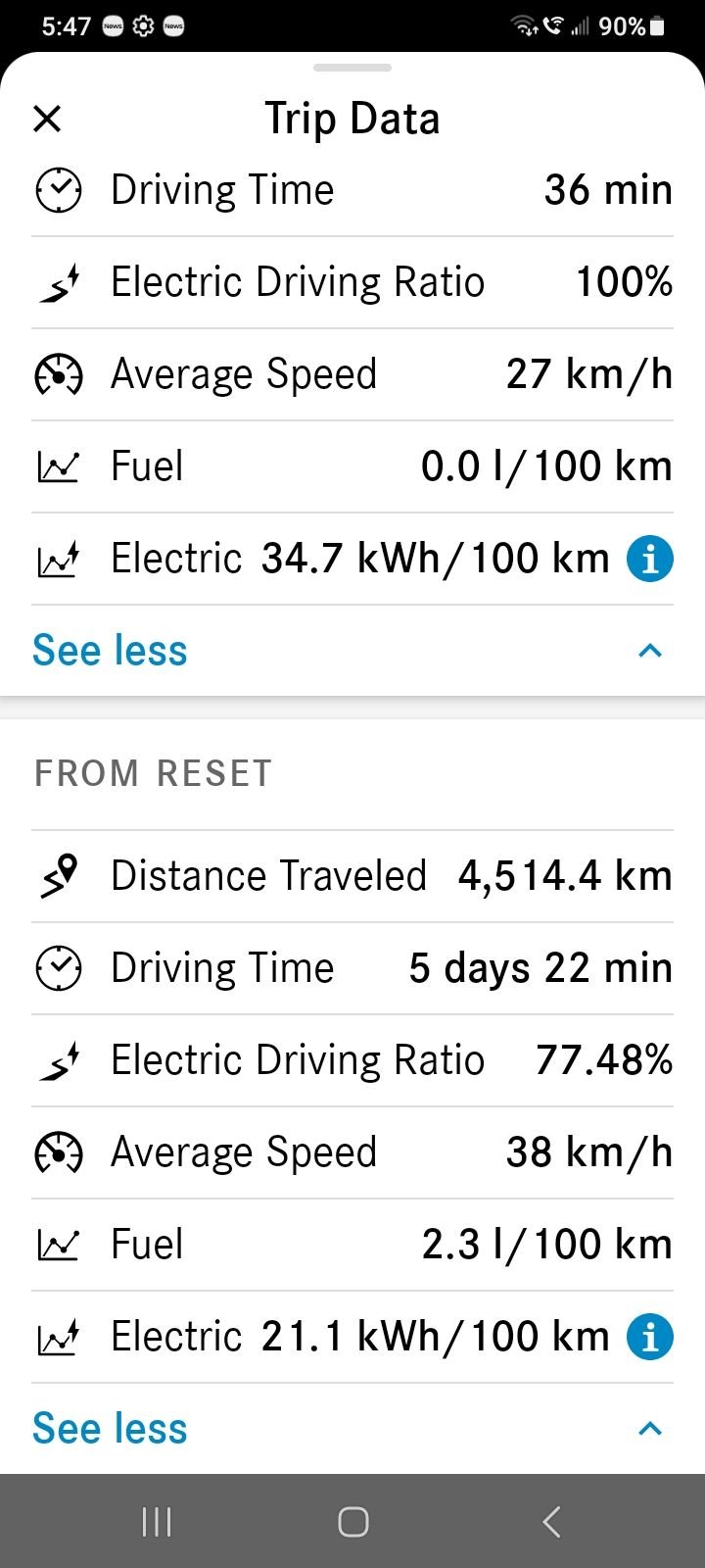 I just crossed the one year mark with my 2025 GLE 450E and also showing a little over 10k miles on the odometer. If I had to guess of the 10k miles Id say I've accumulated around 2k miles on gas and 8k on electric. However is there a way to determine what the actual number is? Ive checked the car and the app and cant find anything that shows but maybe I missed something. Does anyone know if this is possible?