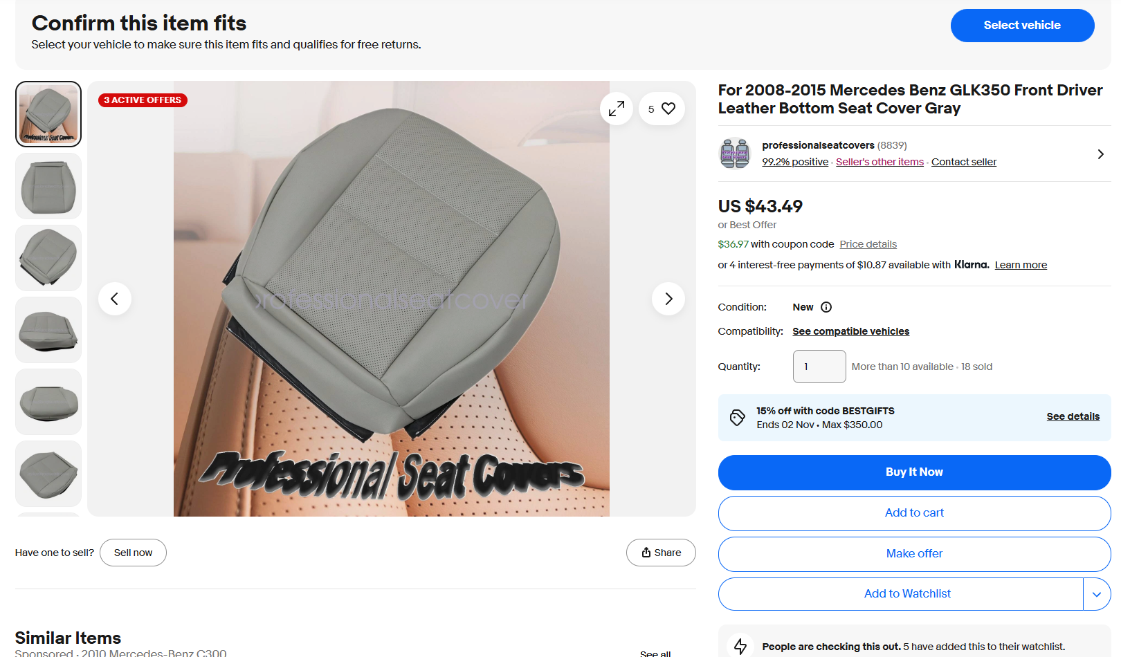 I found a listing specifically for the GLK350 and there is one review with a photo and the seat appears a little darker in color compared to the upper seat in my opinion. I dont know what the review says though its in spanish.