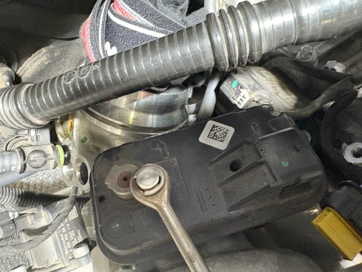 I'm in the middle of changing my plugs in a 2020 GLS450. I have access to WIS, but I cannot find anything about getting to plug #6 in the back. It is underneath what I assume is the intake to the turbo charger inlet and some sort of actuator.(waste gate maybe?). Below is (should be) a picture of what I am dealing with. That is a rag stuffed into the intake. I've been looking at it and WIS for 2 days and am a bit stuck. ANy help appreciated!!