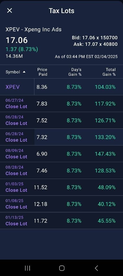 I took some gains late last year. Wishing I had kept all those shares right now though. Xpeng is on fire!