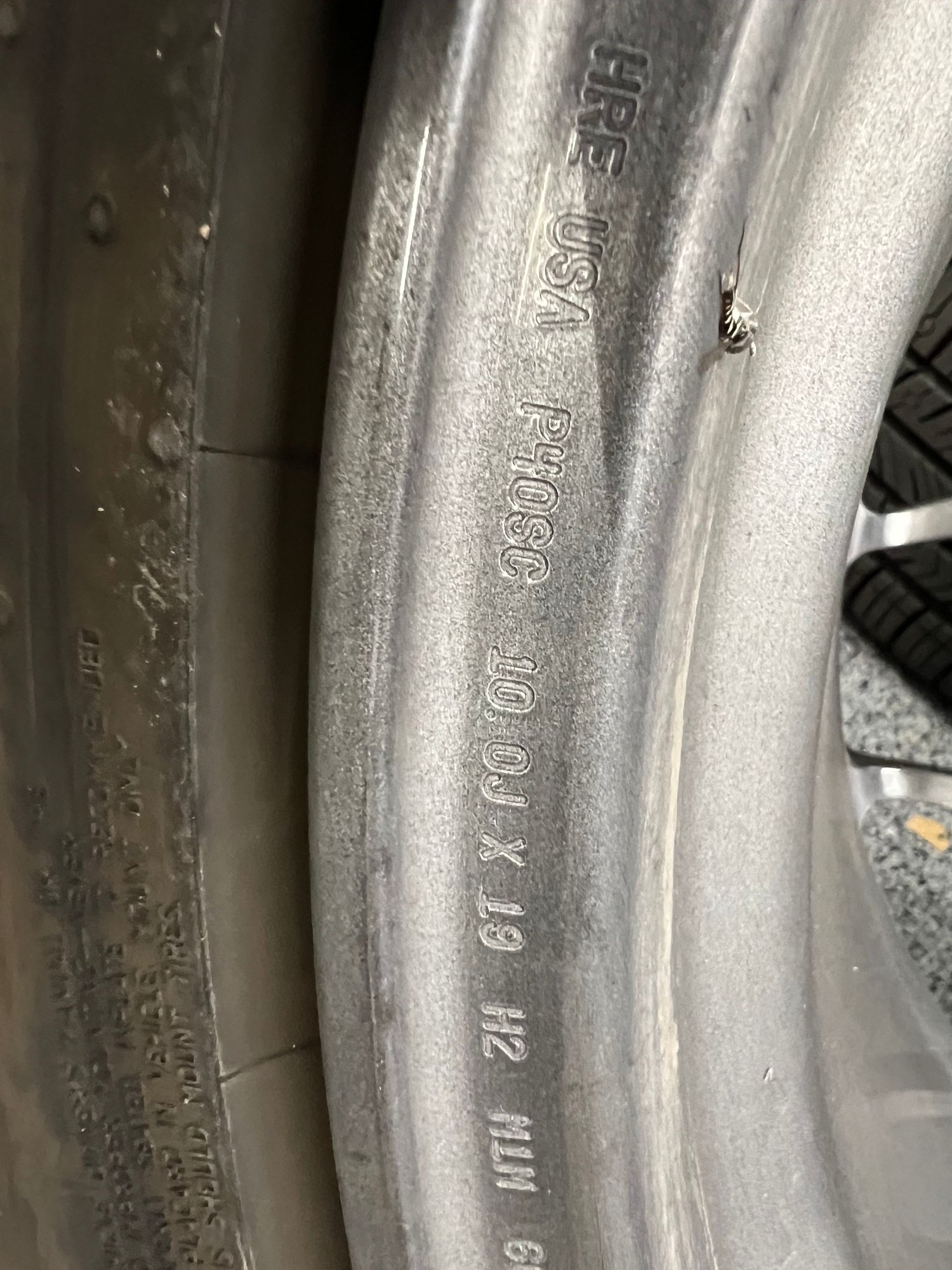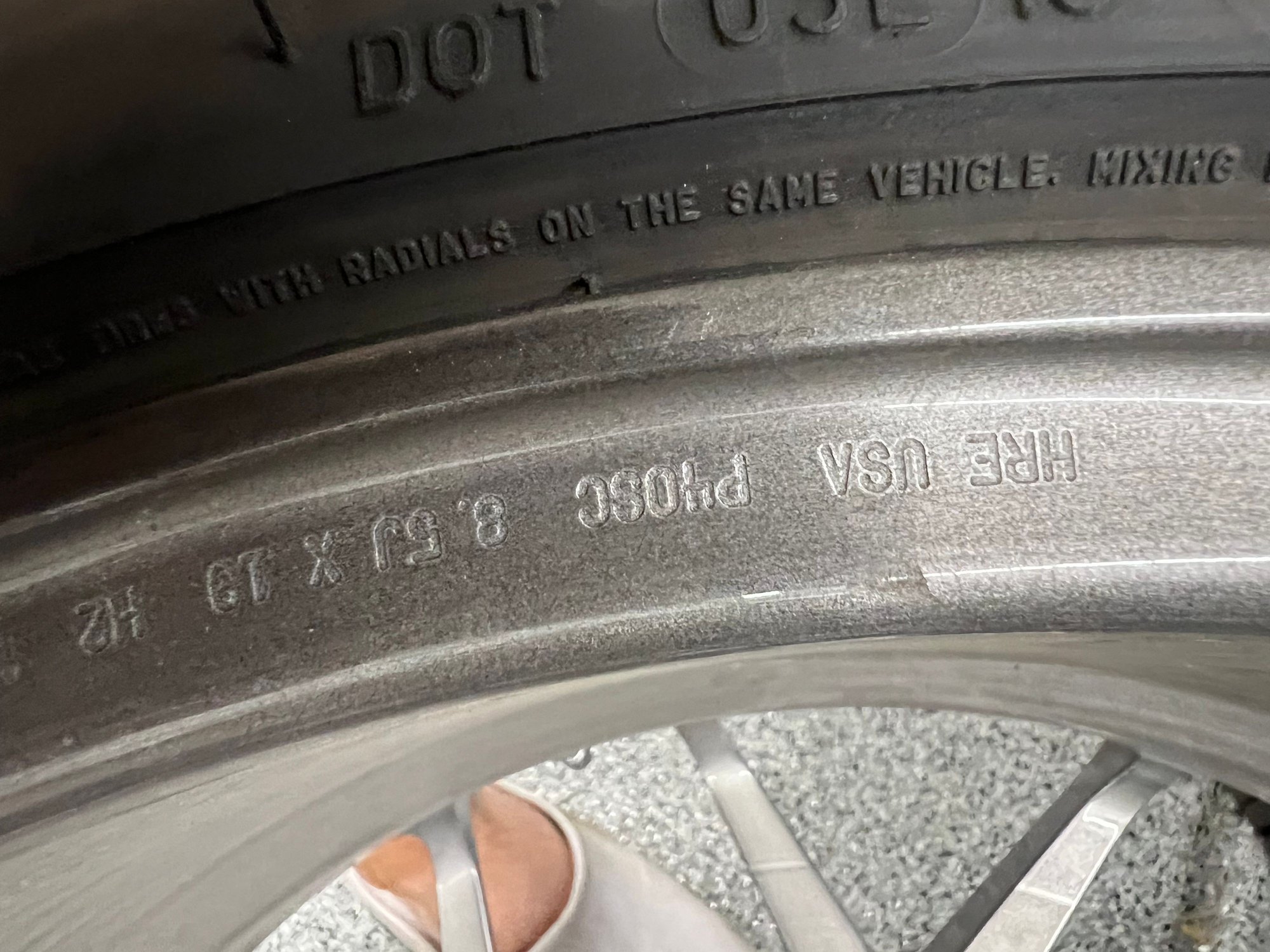 Sent to HRE in San Diego to refinish as new with brushed aluminum and clear tint powdercoat finish.