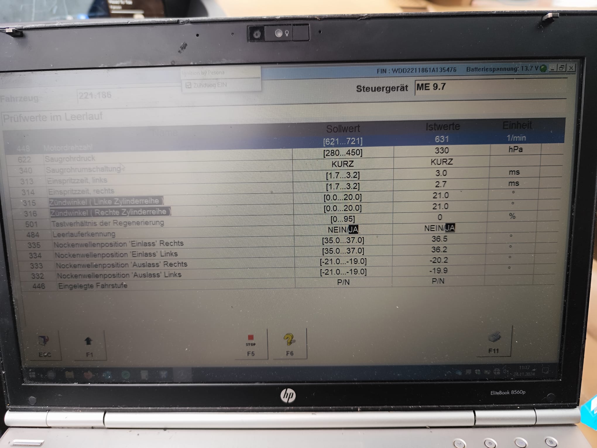 However, if I shift the transmission to N or P at a red light and keep the engine speed at 1000-1500 rpm, the misfiring and the check engine light do not occur either. I have therefore already tried in Xentry to set the engine idle rpm to around 900 rpm (maximum) and to adjust the ignition in the early or late direction (via Xentry), as well as to inject more or less fuel ("rich" or "lean" injection via Xentry), but none of this has helped.