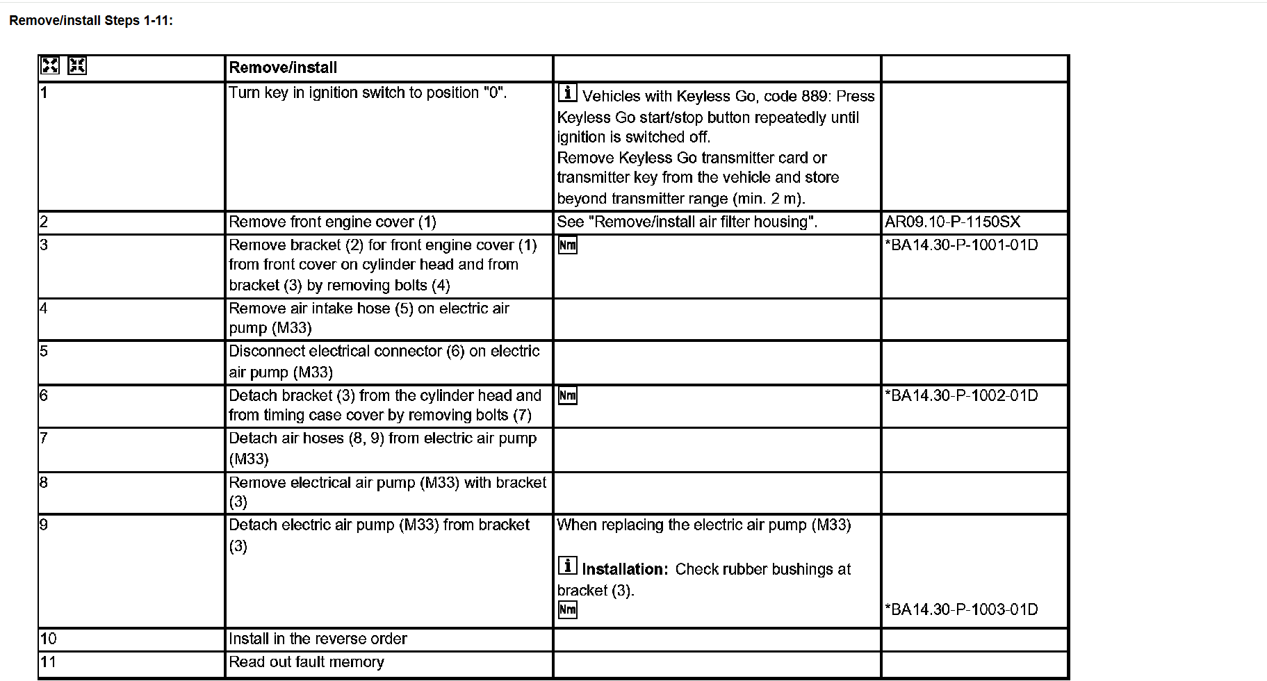 It is fairly simple to dismantle the Secondary air pump on the bench once it is out. Mine was making a hell of a racket at 77,000mls and was told it needed replacing. I took it out, took it apart, cleaned it thoroughly, re-assembled and it’s still going at 147,000mls. From memory (unreliable as it is) the bushes inside are bronze so I don’t think i lubed anything. Probably squirted a bit of WD-40 on as is my want usually. Could save you quite a bit.