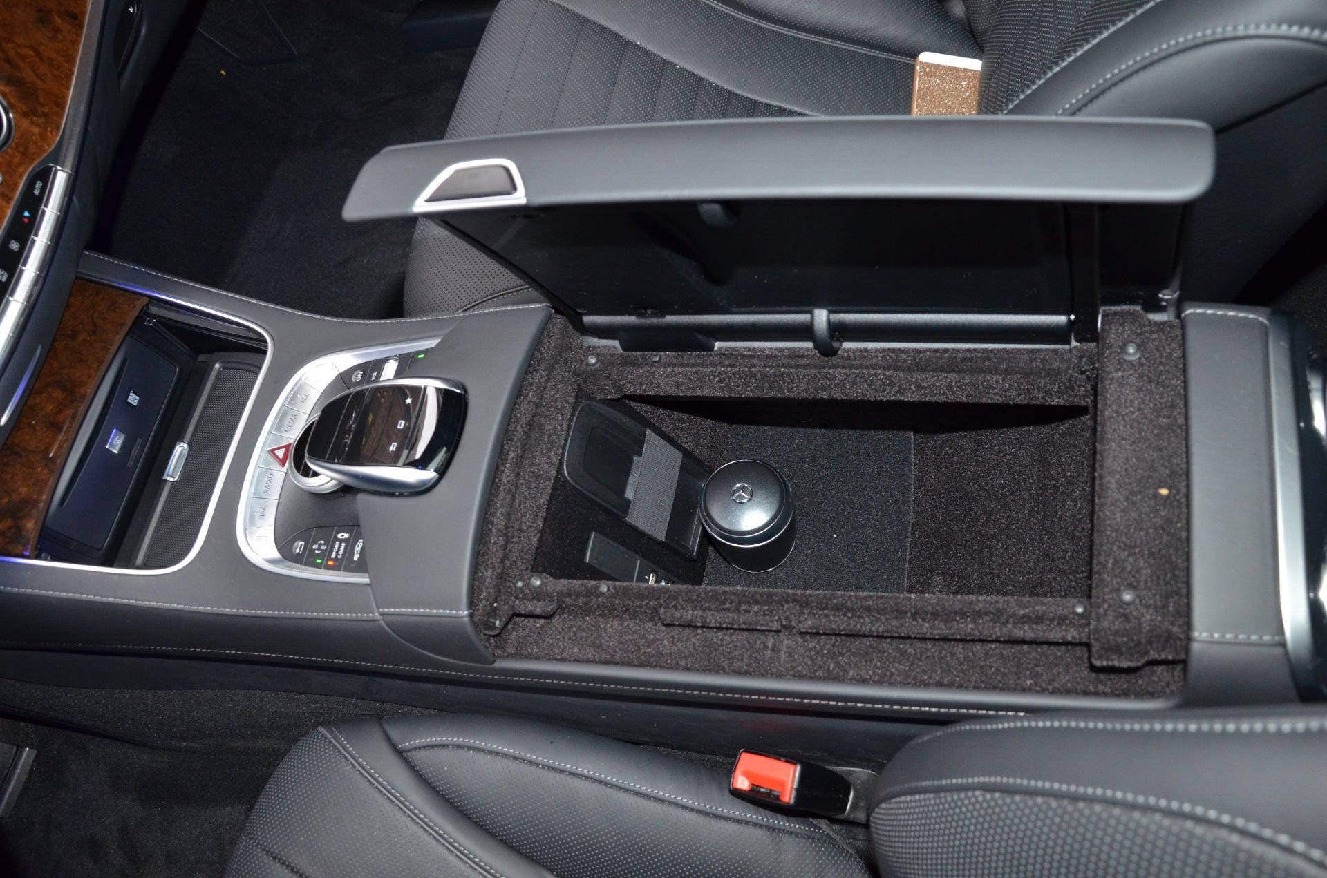 Why not install a Wireless Charger there.... You have a hole for the wire...