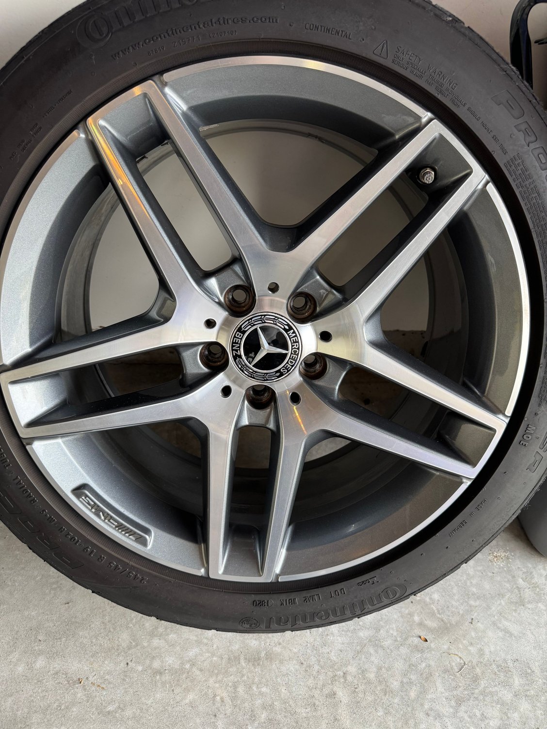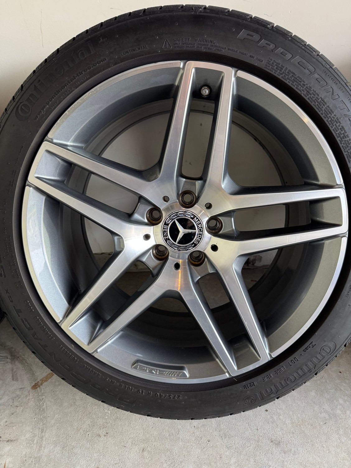 Fronts are Continental ProContact 245/45 R19 and rears are 275/40 R19