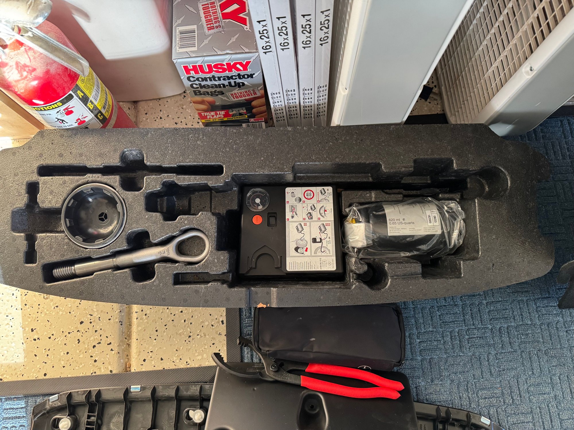 Can someone take a picture or tell me what is missing from my tool tray in s63 c217. Thx