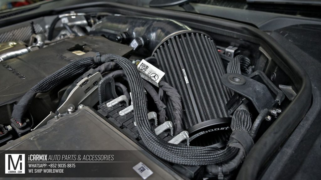 Additionally, the car was equipped with a BLACKBOOST Cold Air Intake System. BLACKBOOST is a leading developer of high-performance turbocharger and intake systems, and their solution for the AMG GT 53 utilizes the limited space to accommodate a larger air filter and ductwork.