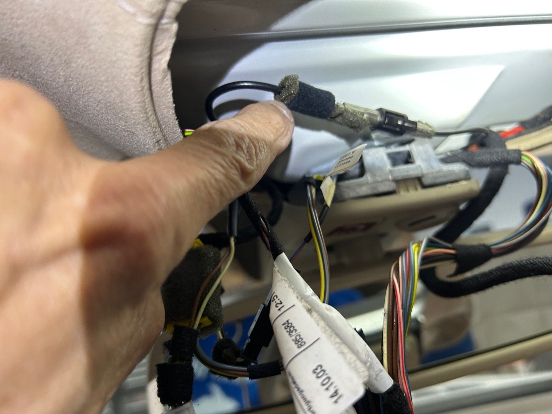 Please help me ID some of the wires under the dome light on my 2004 SL600. Reason is I wanted to wire in a dashcam which will only have power when the ignition is on. I have checked the voltage on every pin of every connector and only find constant +12V on one red wire. No others have power when the ignition is on. I will therefore have to feed something up there to power the dashcam. However, as explained/shown below, I have two wires which are not connected to anything.