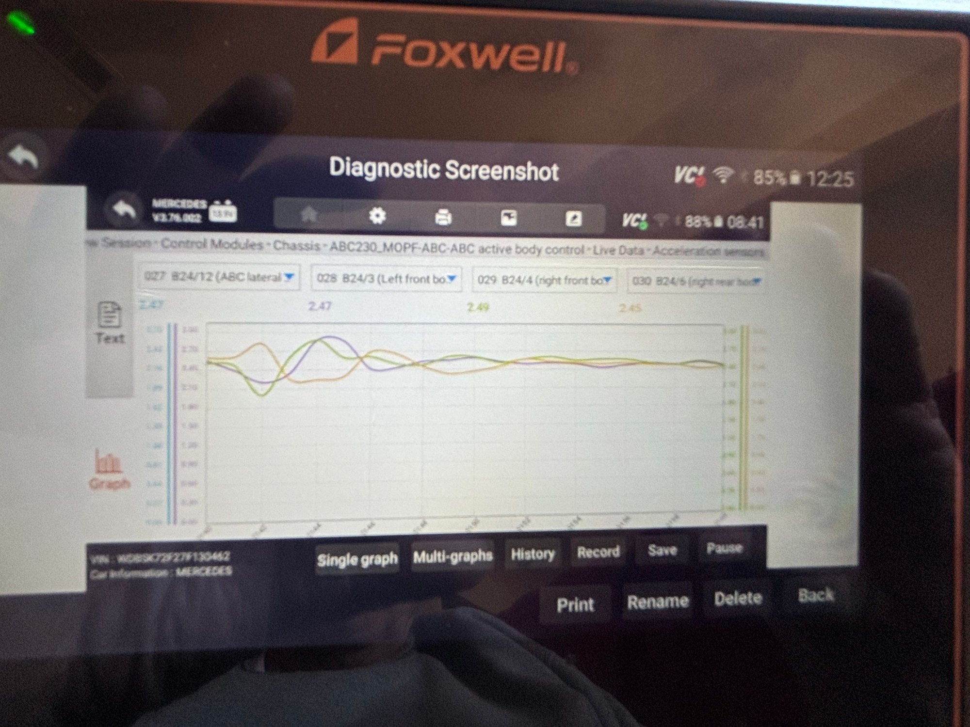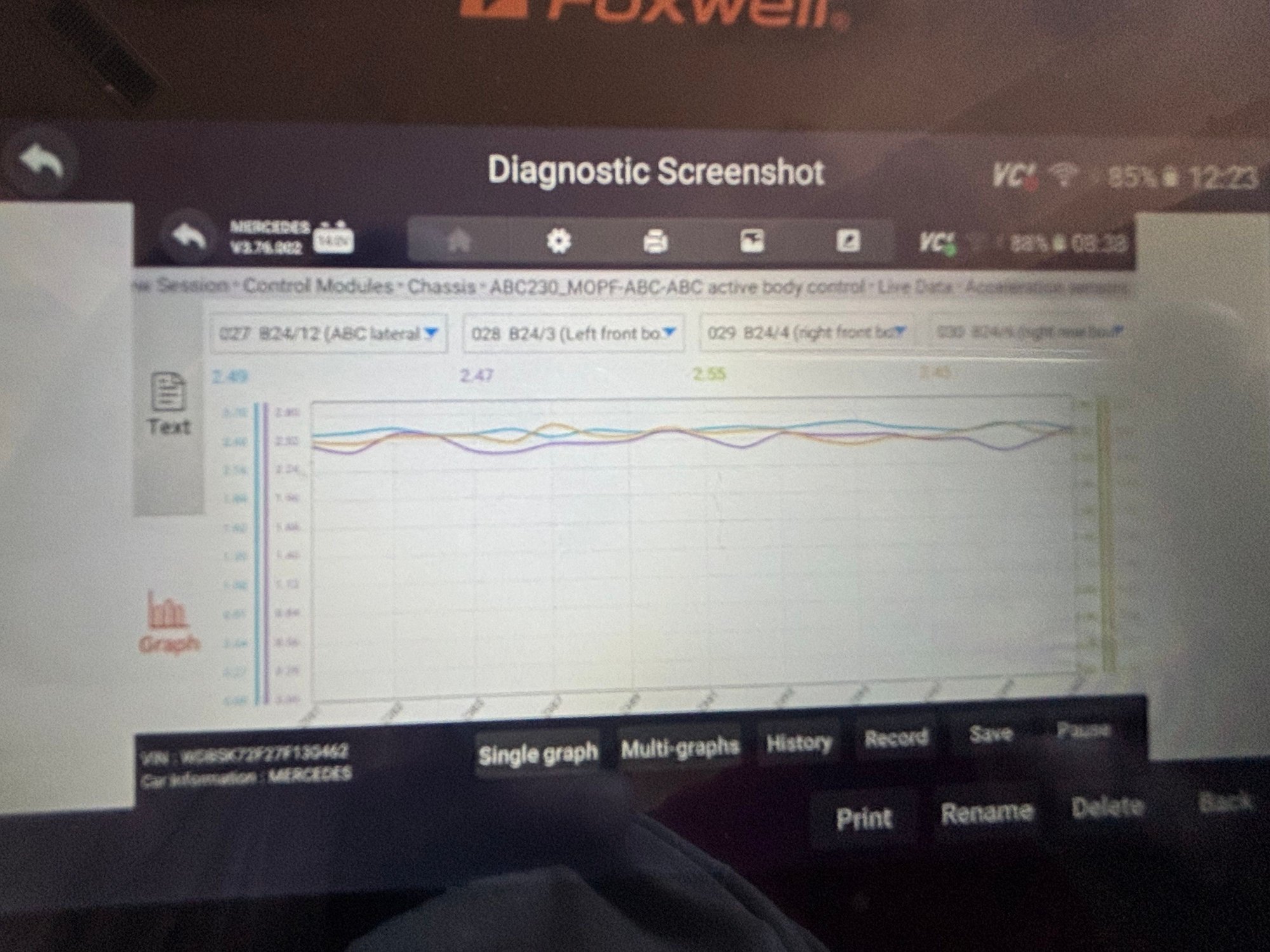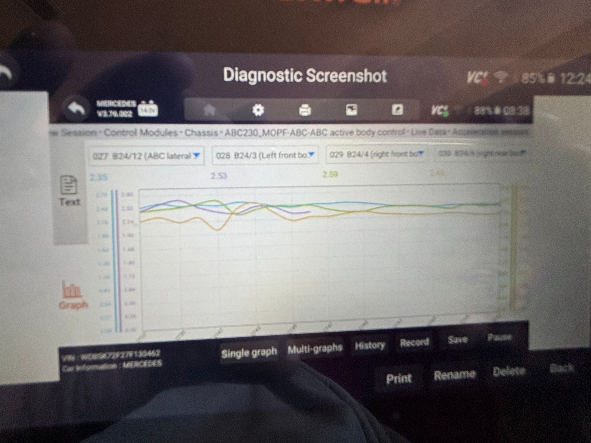 This is all relative to an older post of mine for super stiff stiff ride and now I’m looking at the acceleration sensors. Can any of you guys with experience on this give me an idea if some of this data is evidence of something broken? my scanner shows four sensors. The live data shows some voltages below 2.25 also all but one of the sensors seems to be intermittent, not showing data at certain times. I also have one check valve plunger, showing a different voltage than the others while at rest. Photos of data