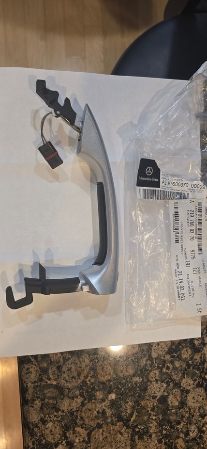 I have an extra BRAND NEW "DISCONTINUED" Iridium Silver, Keyless, Rear, Exterior, Driver-side Door Handle (A219 760 03 70 9775 -aka- A21976003709775) for my 2006 CLS55 W219 that fits several other years & models of the CLS (partial list below?). Here's one Mercedes parts website (https://classicparts.mbusa.com/oem-p...21976003709775) I got this info below. Pics are of the item I'm selling. It CAN BE SIMPLY PAINTED to MATCH YOUR CAR!! I have installed another door handle at this location and it IS NOT hard. Just need a long screwdriver.