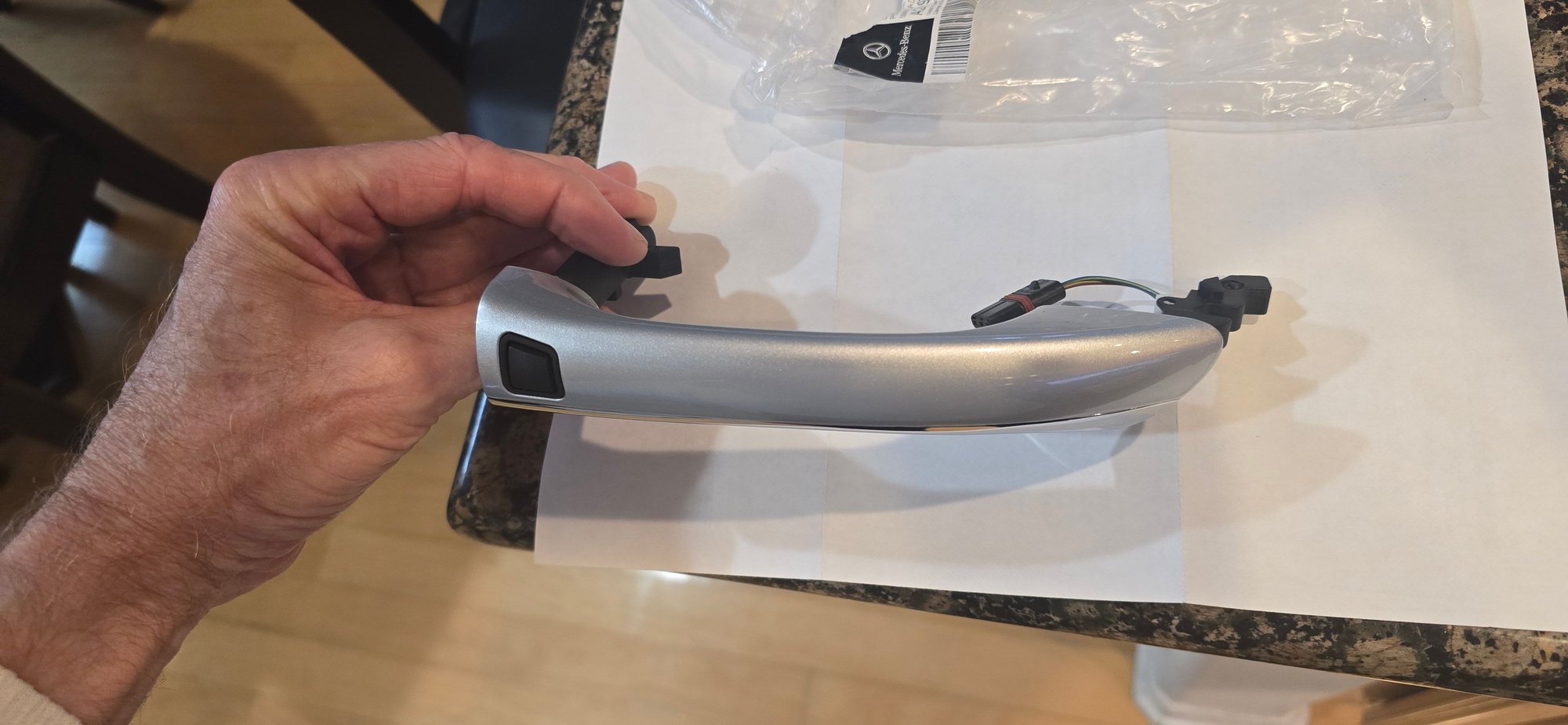 Just to clarify — these keyless-go door handles ARE STILL AVAILABLE from MB, but most colors are NLA. If you order a new door handle, it will now usually be in a primer color that must be painted to match your body color.