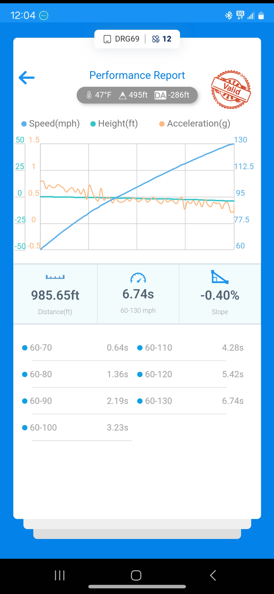 SO FOR THE RESULTS l! Over a second faster!!! And this is without attempting for a PB and in over 1100DA . There's no doubt that these intakes in cooler weather would show even better improvements . At the very bottom of each log you can see the date showing these logs were done on the same day . I tried to be as accurate as possible and these are the results on a stage 2 ec tune using 93 octane where boost peaks to33-35 range. Results would vary if your running a tune that's using less boost as that tune would not be demanding as much from the intake. That said we dropped .5 .7 on the 60-130 on a completely stock ecu with no tune at all with stock boost pressure. Still had fantastic improvements