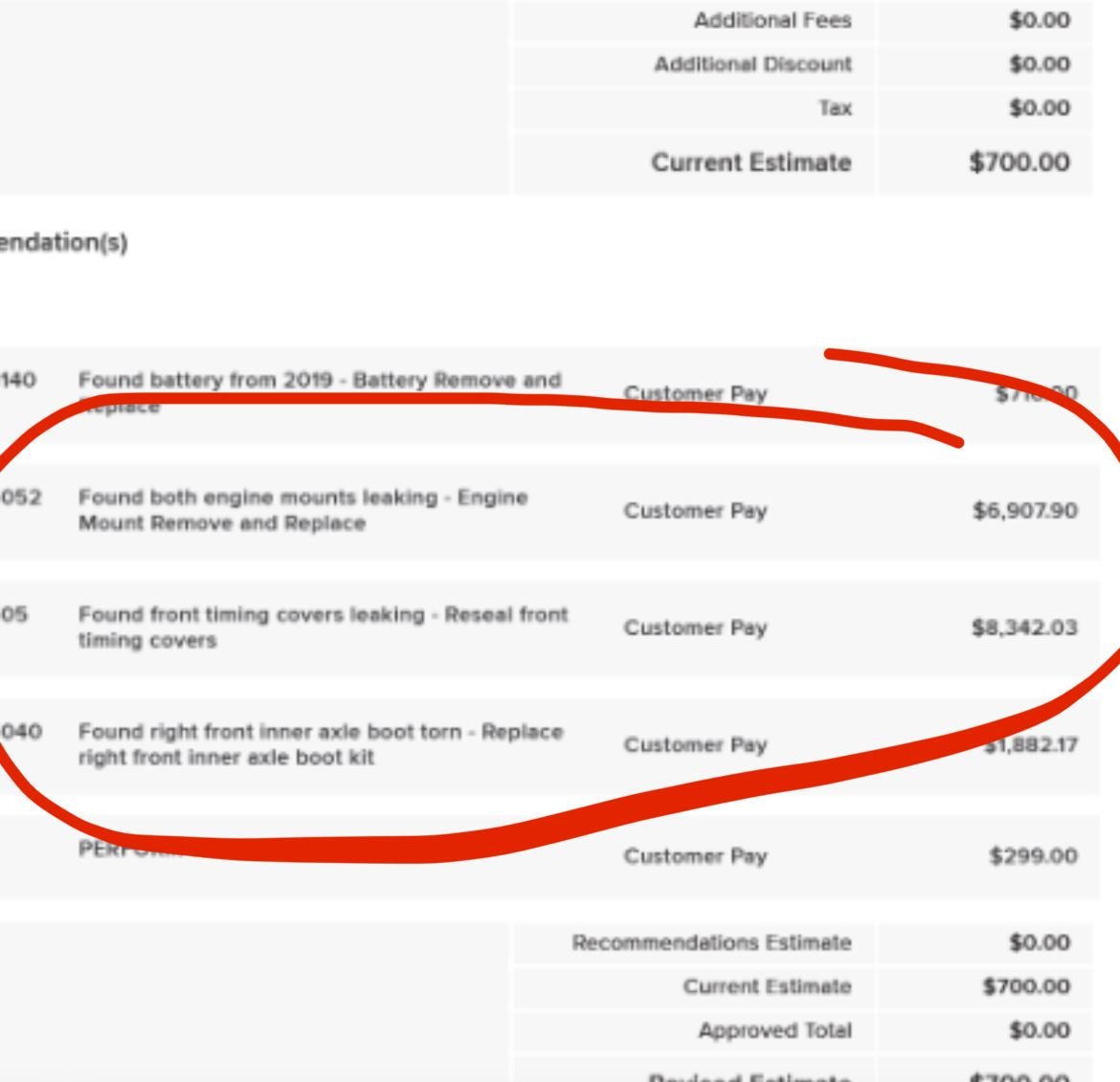Im not sure what this dealer was smoking because the rates at my local dealer are nowhere near that cost. Id have to find my cost on motor mounts when I had them done at a dealer under warranty, but it was less than two grand and maybe closer to one.