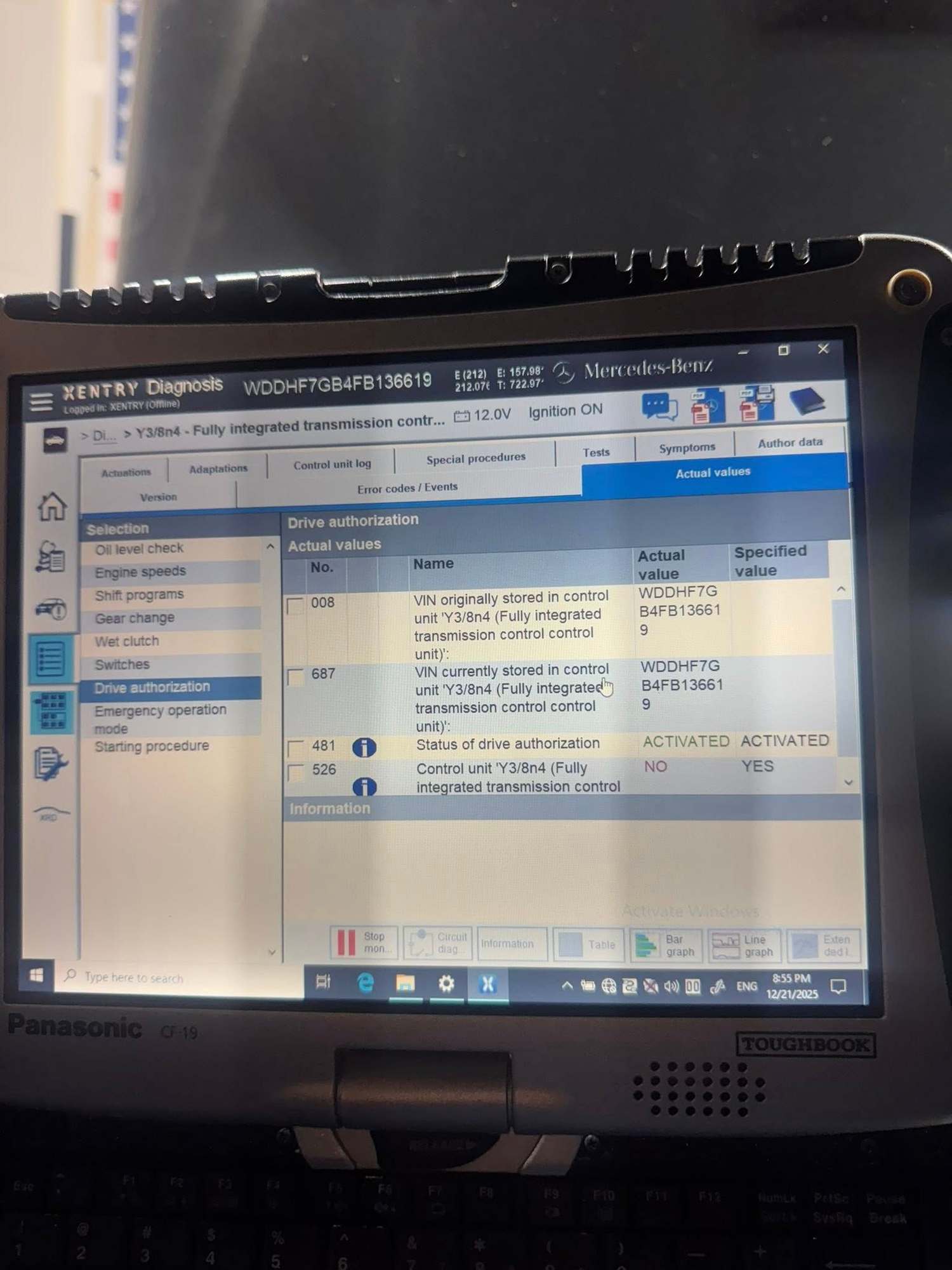 Hello I got 2015 Mercedes E63s amg. I was driving nicely turned off the car. I come back car refused to go into gear. I got the code on the vgs (y3/8n4) is U042600: The start enable signal was not issued by ‘drive authorization system’. I have access to xentry offline (no coding) and a nice launch pad v scan tool with some coding. I also attached a live data line from xentry in the drive authorization section I assume the red NO should be a YES like xentry specified. I also changed my CAN signal distribution box (x30/21). I measured voltage from back probing the CAN box as well got good voltage for CAN high and low all around the box. My launch had a small option to teach in the drive authorization on the vgs but when I click on it says no communication but every other teach in process in the transmission does work and proceeds. I don’t know what to do? Any ideas?