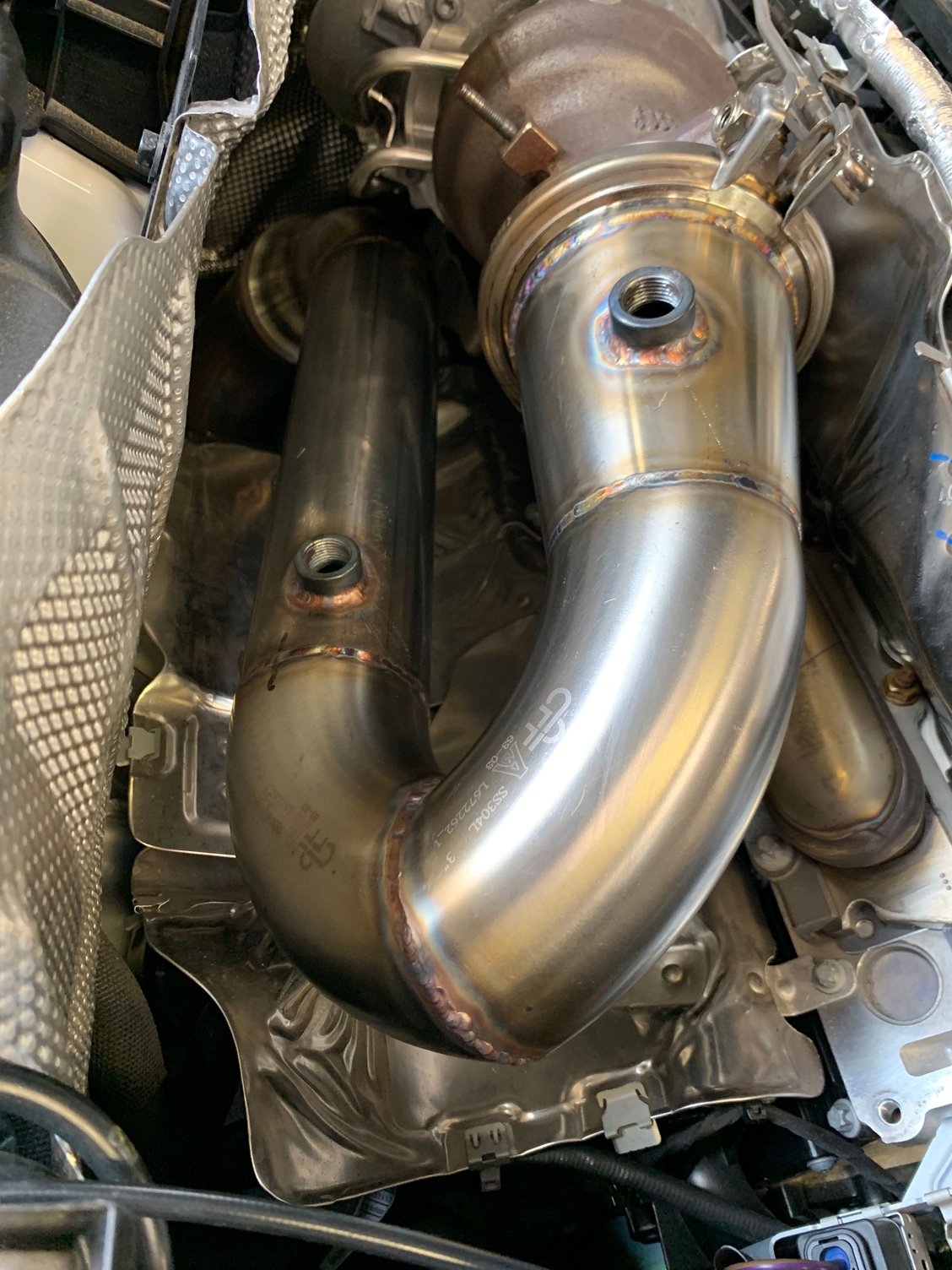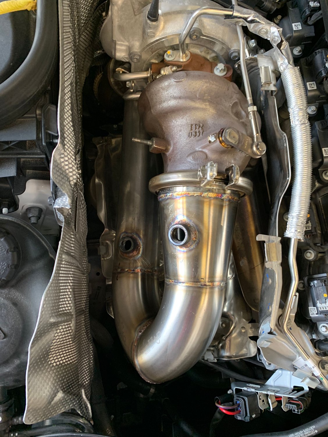 Looks like cat and the GPF/OPF are two separate parts. I wonder if removing the GPF/OPF from the OEM downpipe would not trigger a CEL. Another idea is to wrap the downstream o2 sensor in the catalytic material to fool the system. From what I read the GPF/OPF is killing the sound (high pitch crackles, burbles, etc.) much more than the Cat. The picture isn't clear what's the OEM P/N of the downpipes? looks like A 250 140 02 08 but It's too blurry. I might buy one and mod it for a GT53. I think modding the OEM would be good for people who don't want a cel fix with a ECU tune but want louder exhaust while keeping the air cleanish