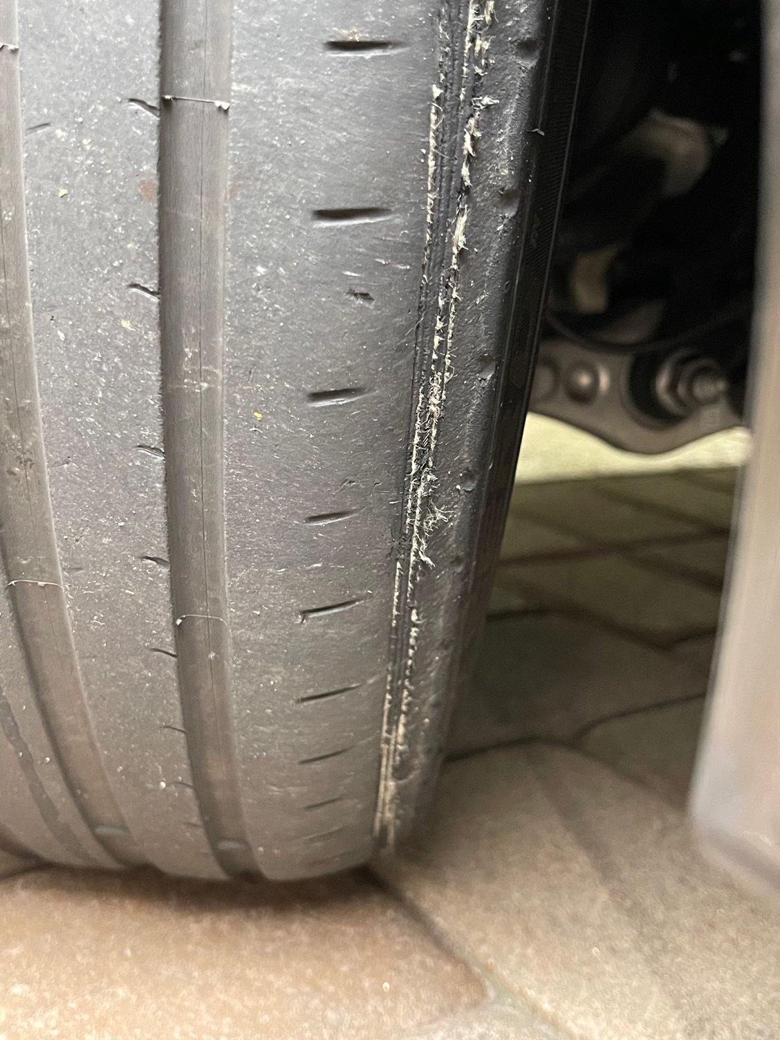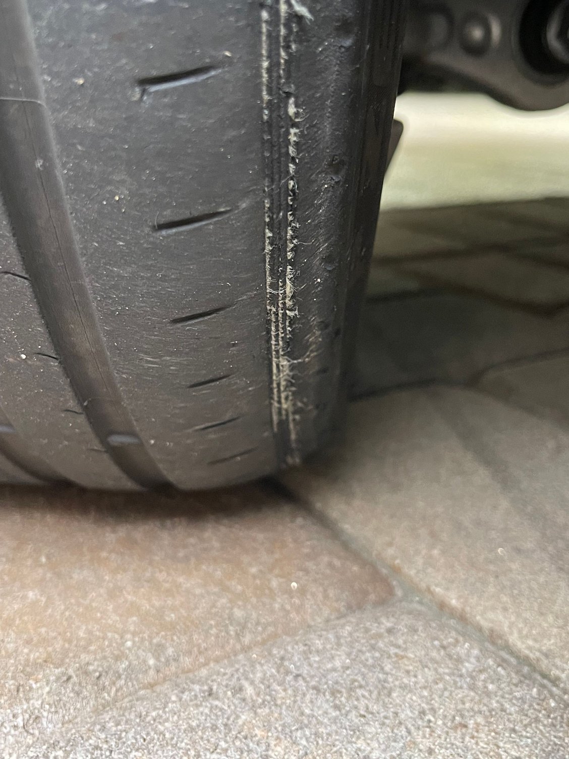I'd replaced the stock Pirelli tires at ~10,000 miles with new PS4S due to the worn sidewall even though the rest the tread depth is totally fine. The front PS4S tires went a bit longer, maybe close to 14,000 miles for the same issue - tire alignment verified ask OK. Didn't replace the rear tires at that time as they still looked good. Kept checking the rear tires for wear and they were still looking good, then one day had a leak develop on one of the rear. Took it to Discount tire nearby thinking I'd picked up a nail. Nope, sidewall was shredded just like the front tires. The tires look fine from the rear or the side, but if you lay down on the ground or stick your phone's camera under the car then you can see the wear.