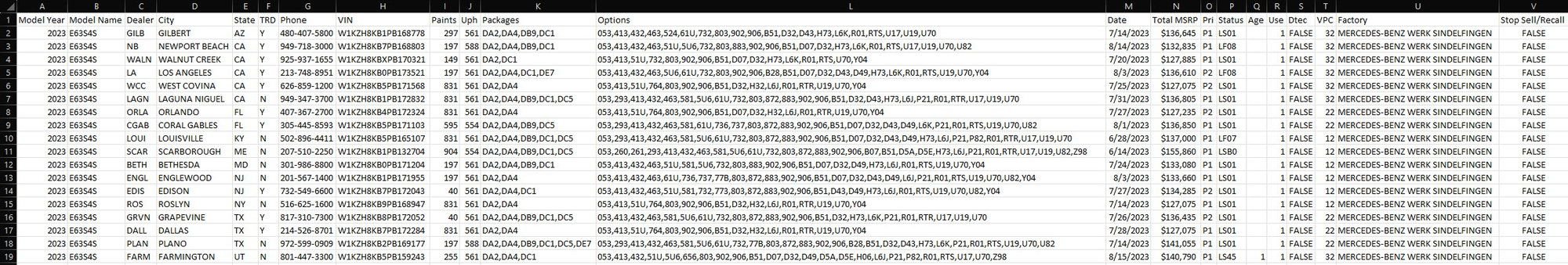 Yes about 18 non FE cars according to this thread, where this list was posted. I attached the excel here too from that thread: 2023 e63s wagon - MBWorld.org Forums