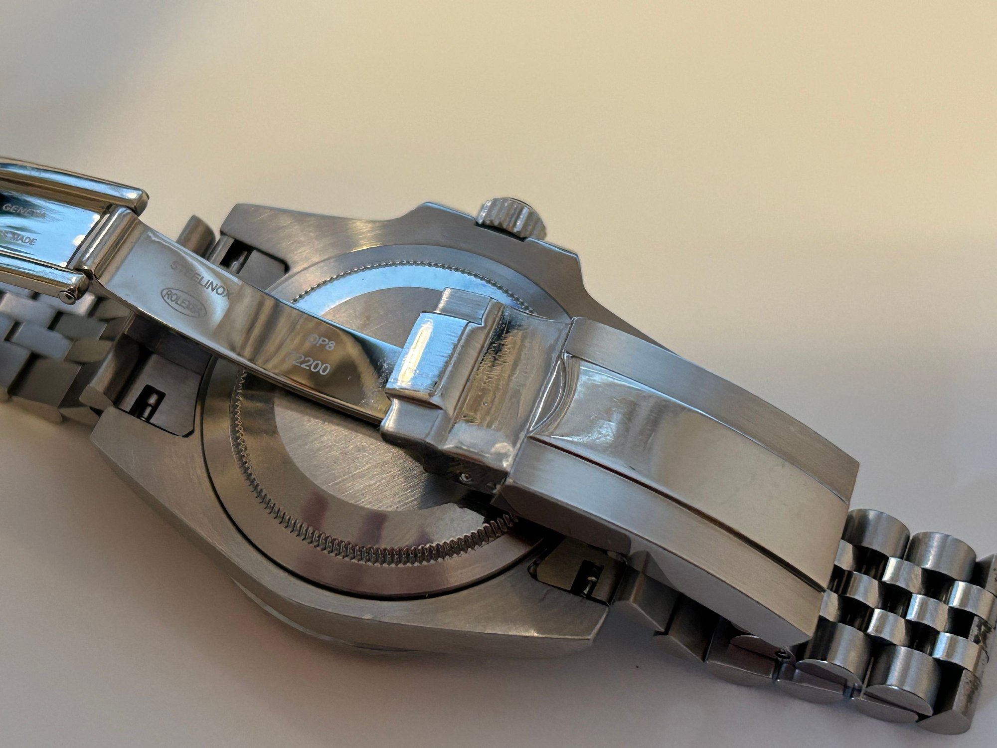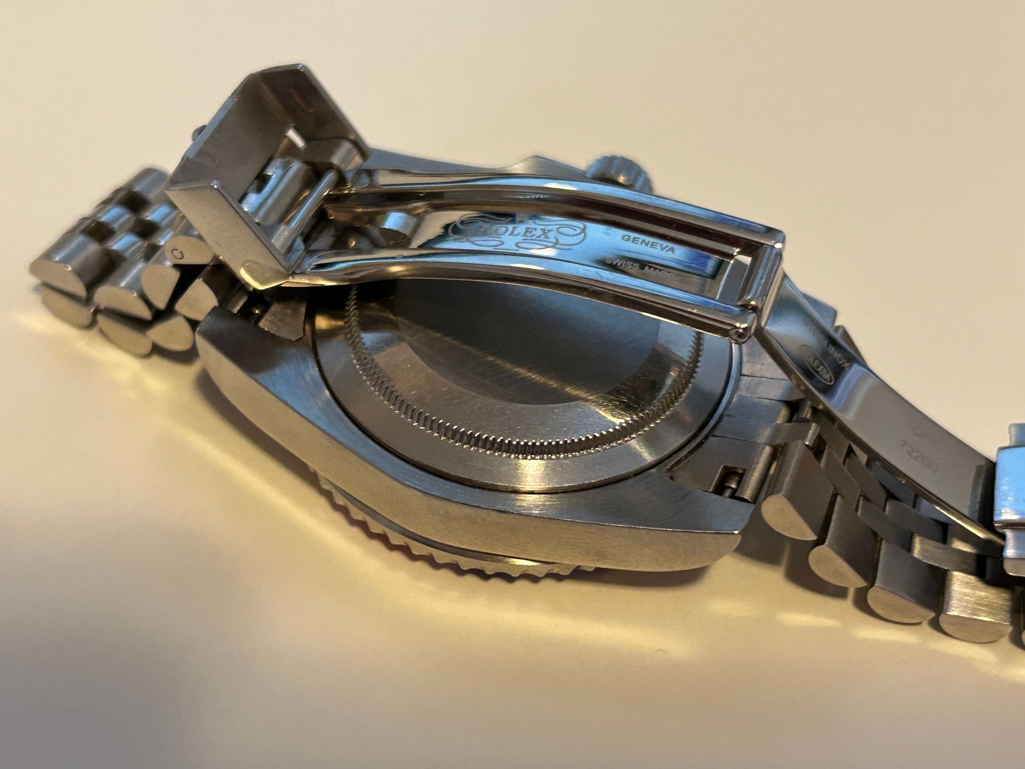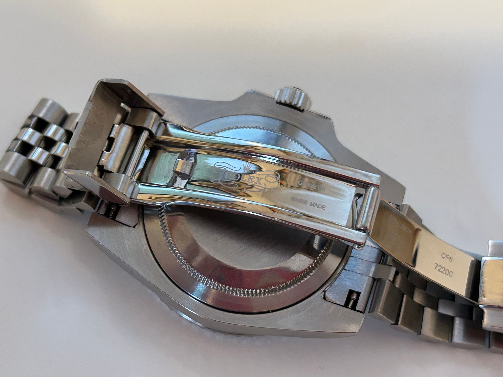 I know there’s not a lot of respect for replica watches here but here goes: Mid-level replica Rolex GMT Master II “Pepsi”, keeps excellent time with great power reserve. GMT hand functions like genuine. Excellent used condition. Sized to 7-1/4” wrist with 4 extra links.