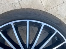 Minimal curb rash fixed in a shop.