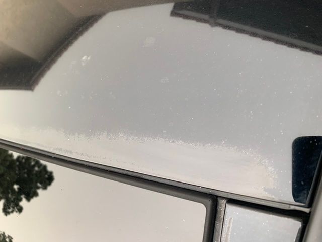 Top Front glass/plastic panel in front of sunroof meets front windshield. Took to dealer says it’s normal for coating to come off from sun exposure?? Only 3 year old GLC dealer will replace under warranty but still Mercedes is getting cheap with there quality.
