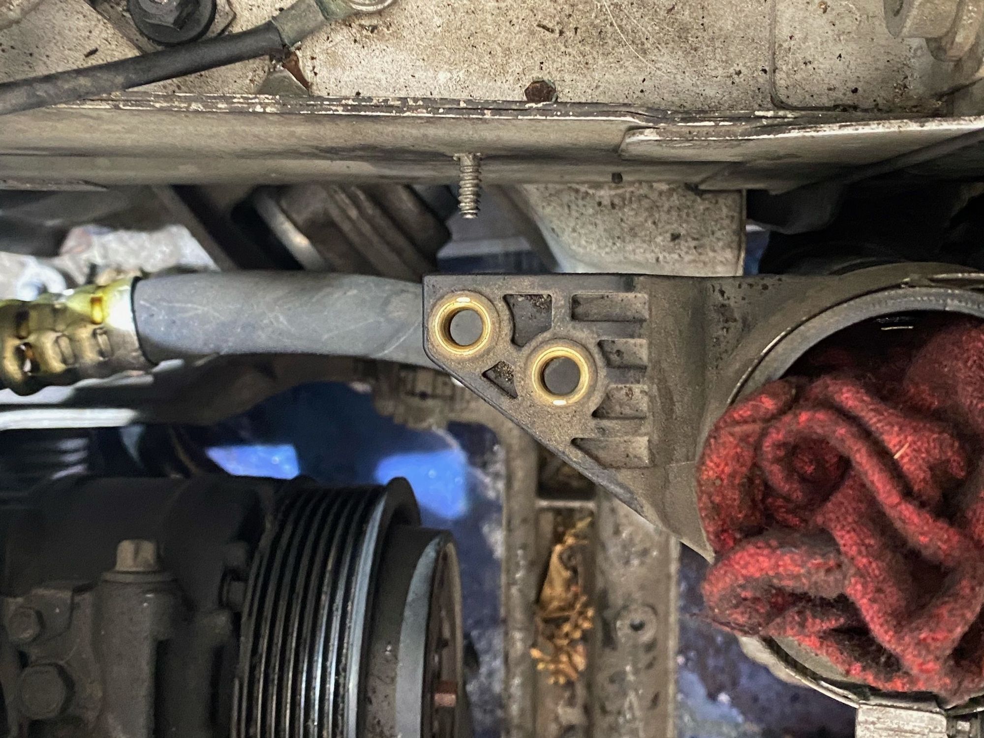 The bracket holding the front box of the supercharger.
