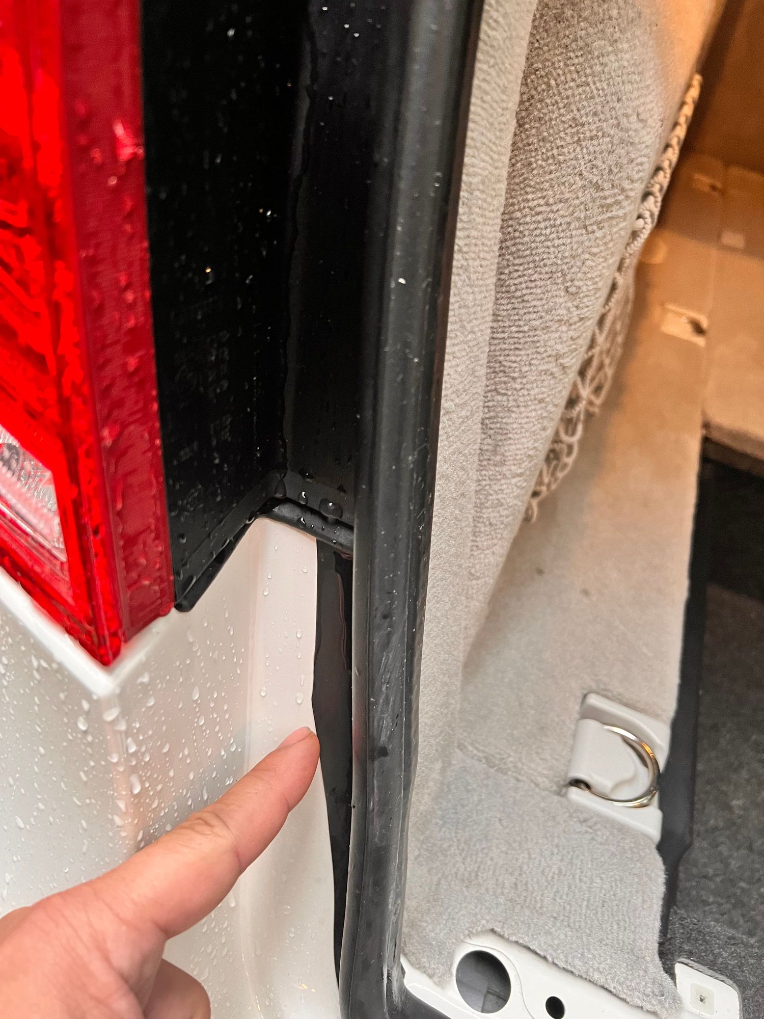 This is the section of weather strip that I pulled out to cover the gap between body panels. But there’s still about 3” left of body panel gap below this angled section of weather strip. Wondering if it’s supposed to seal all the way to the bumper. Mine has a slight opening there where water presumably enters and exits behind the rear bumper