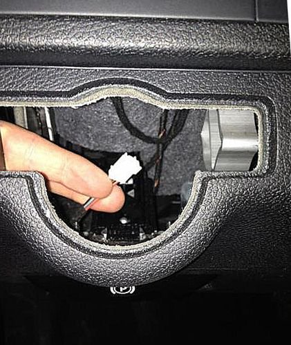 Reach with your hand behind the headlight switch underneath the plastic kick panel, and release the wiring harness. The harness is secured with plastic electrical harness clips. Unclasp and go.