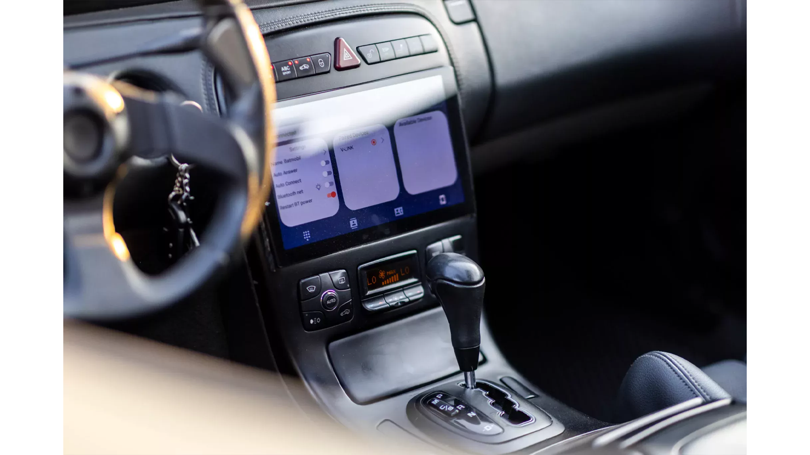 While the exterior is nearly unrecognizable as a Mercedes, remnants of the CL55's interior remain. The cabin retains a few factory details but has been updated with a modern infotainment screen and an aftermarket steering wheel. It’s a mash-up of past and present, luxury and comic-book excess.