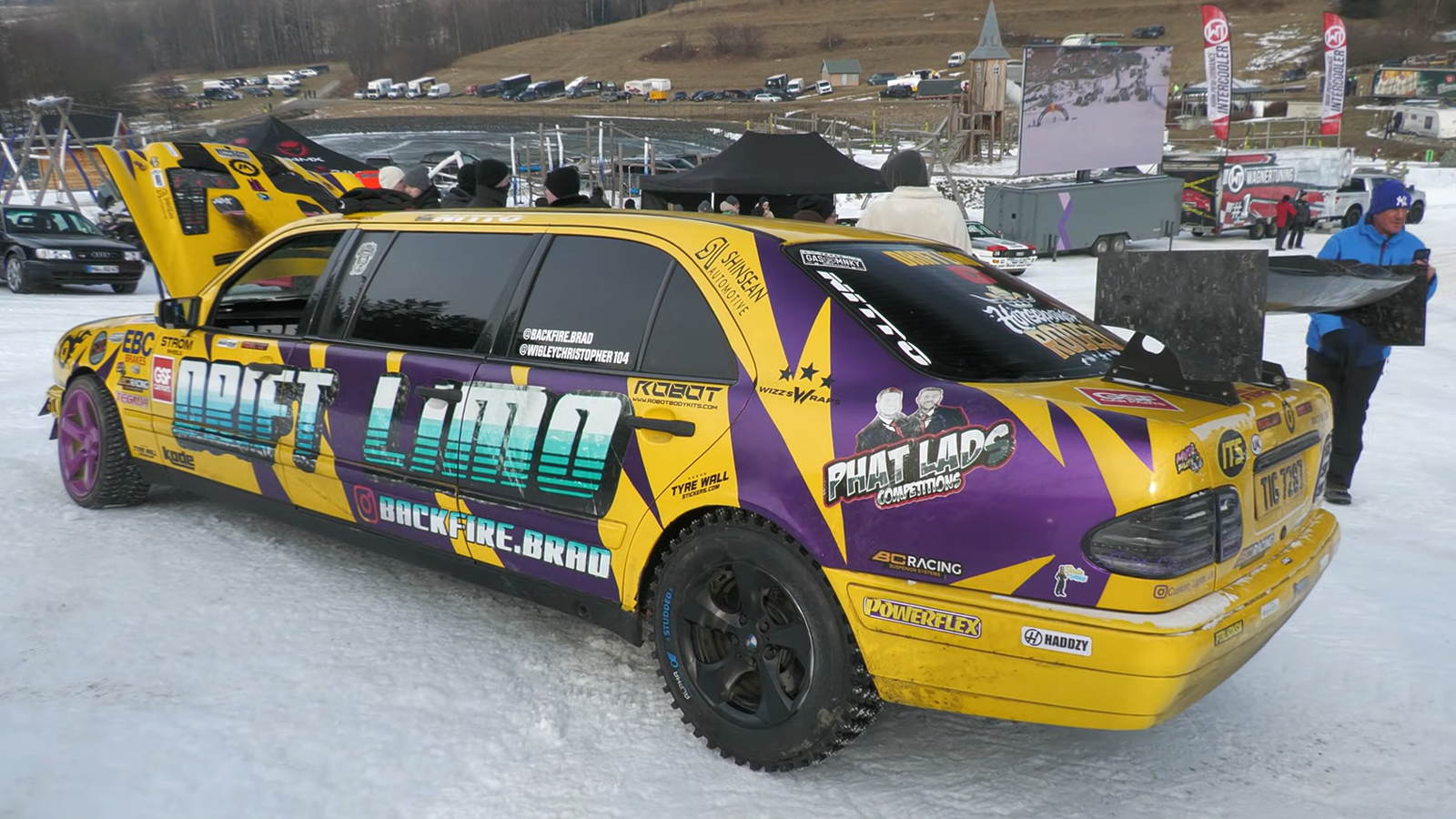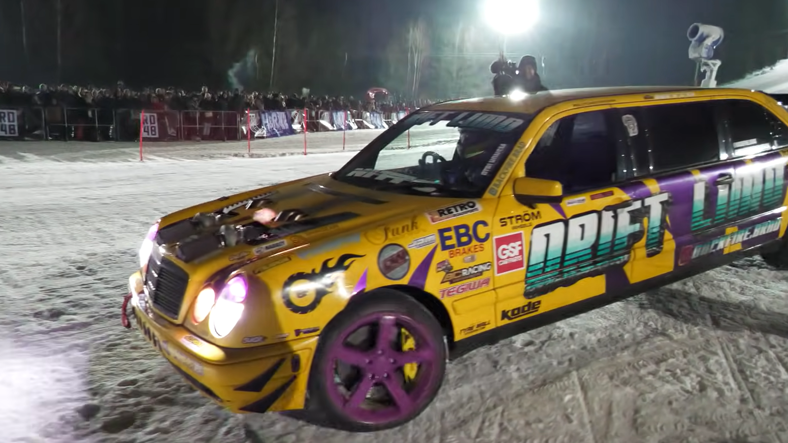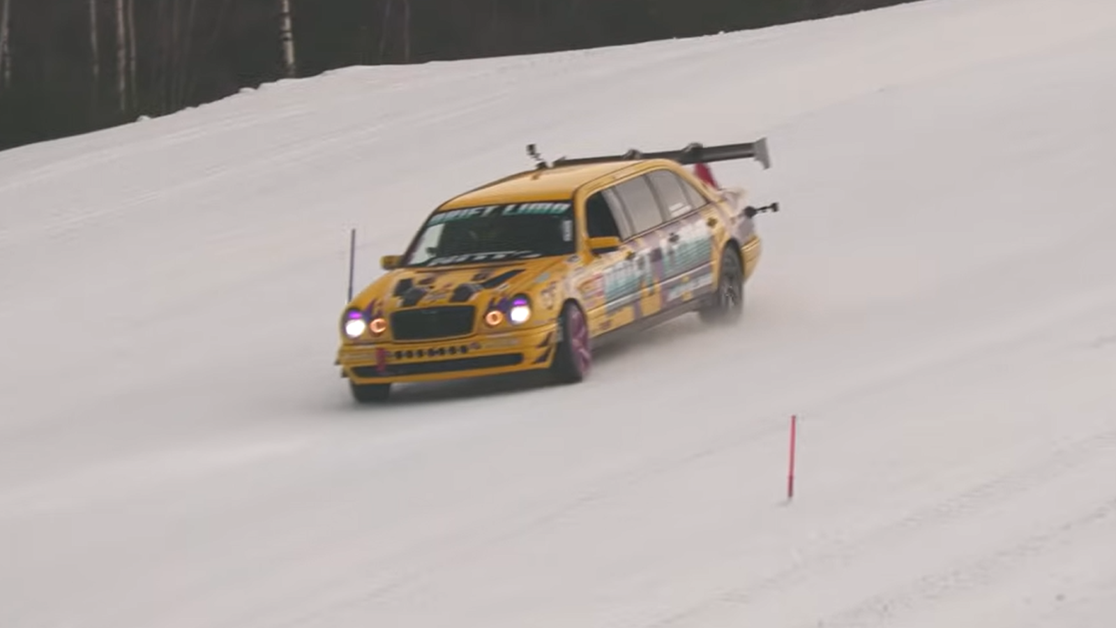 One of the most unusual appearances for the car came at Ice King Battle, an event organized by the German automotive group RD48. Instead of a traditional drag strip, the competition takes place on snow and ice, sending vehicles racing uphill on a steep ski slope. The concept combines drag racing with extreme winter conditions, and the 1,000-horsepower limo proved capable of attacking the course while sliding and spinning its studded tires.