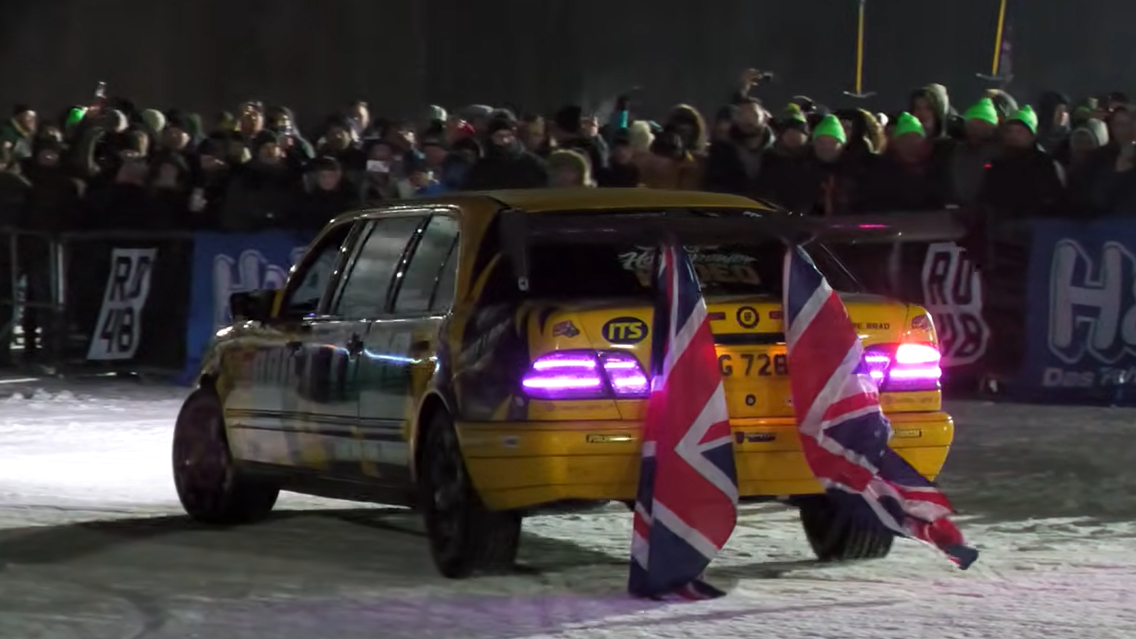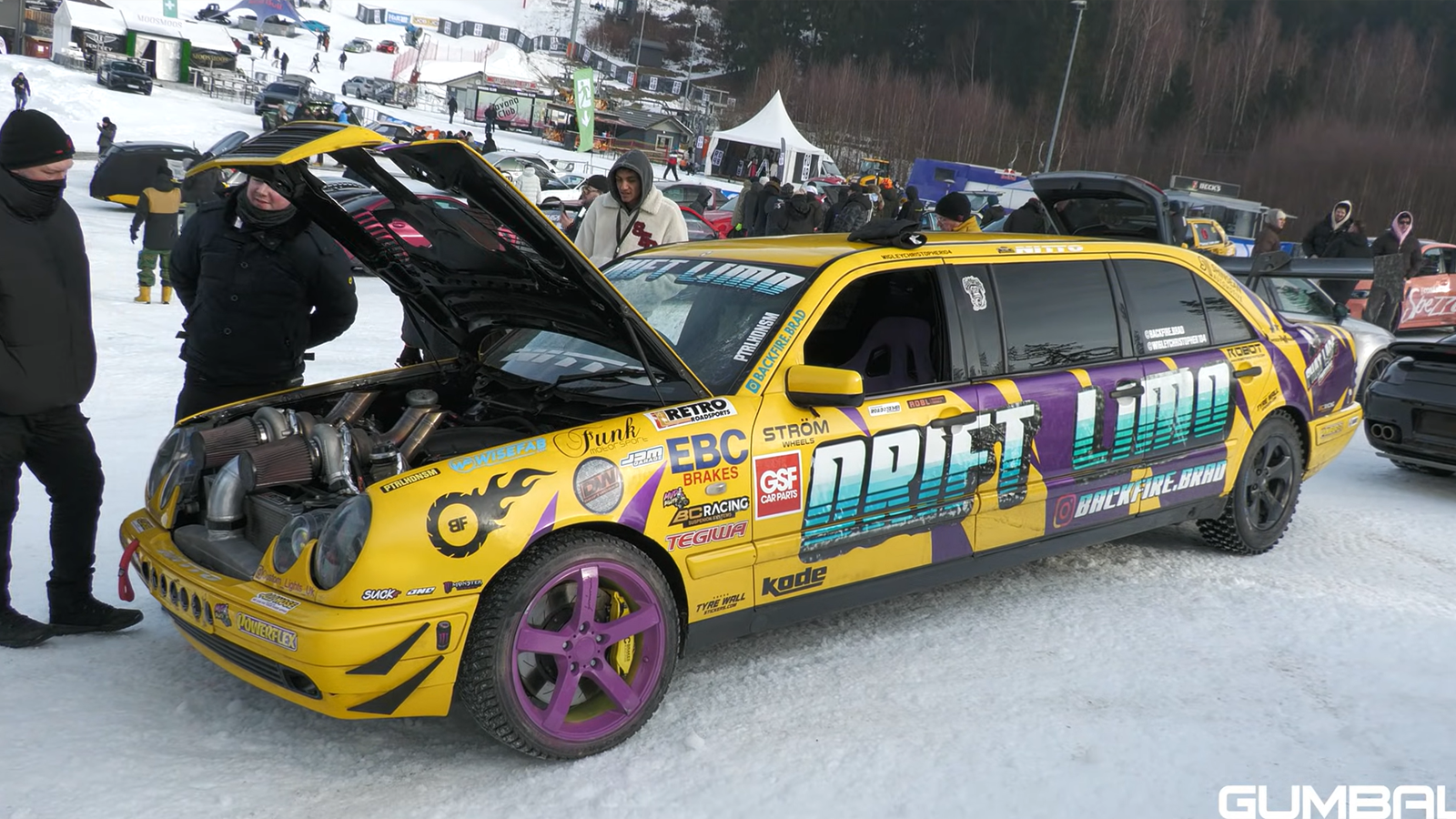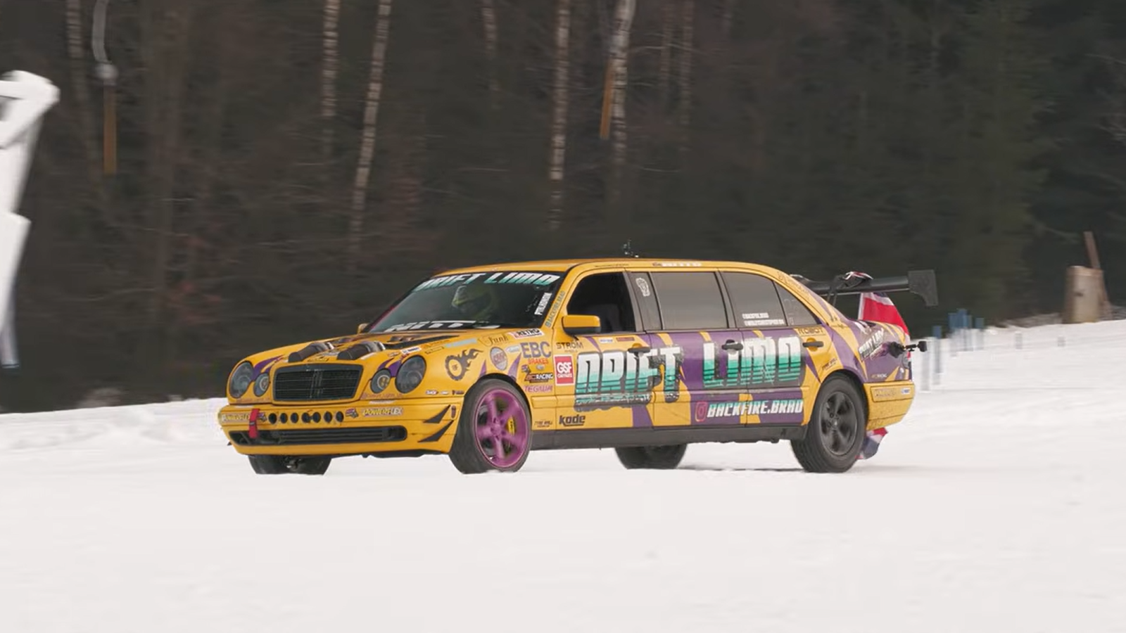 One of the most unusual appearances for the car came at Ice King Battle, an event organized by the German automotive group RD48. Instead of a traditional drag strip, the competition takes place on snow and ice, sending vehicles racing uphill on a steep ski slope. The concept combines drag racing with extreme winter conditions, and the 1,000-horsepower limo proved capable of attacking the course while sliding and spinning its studded tires.